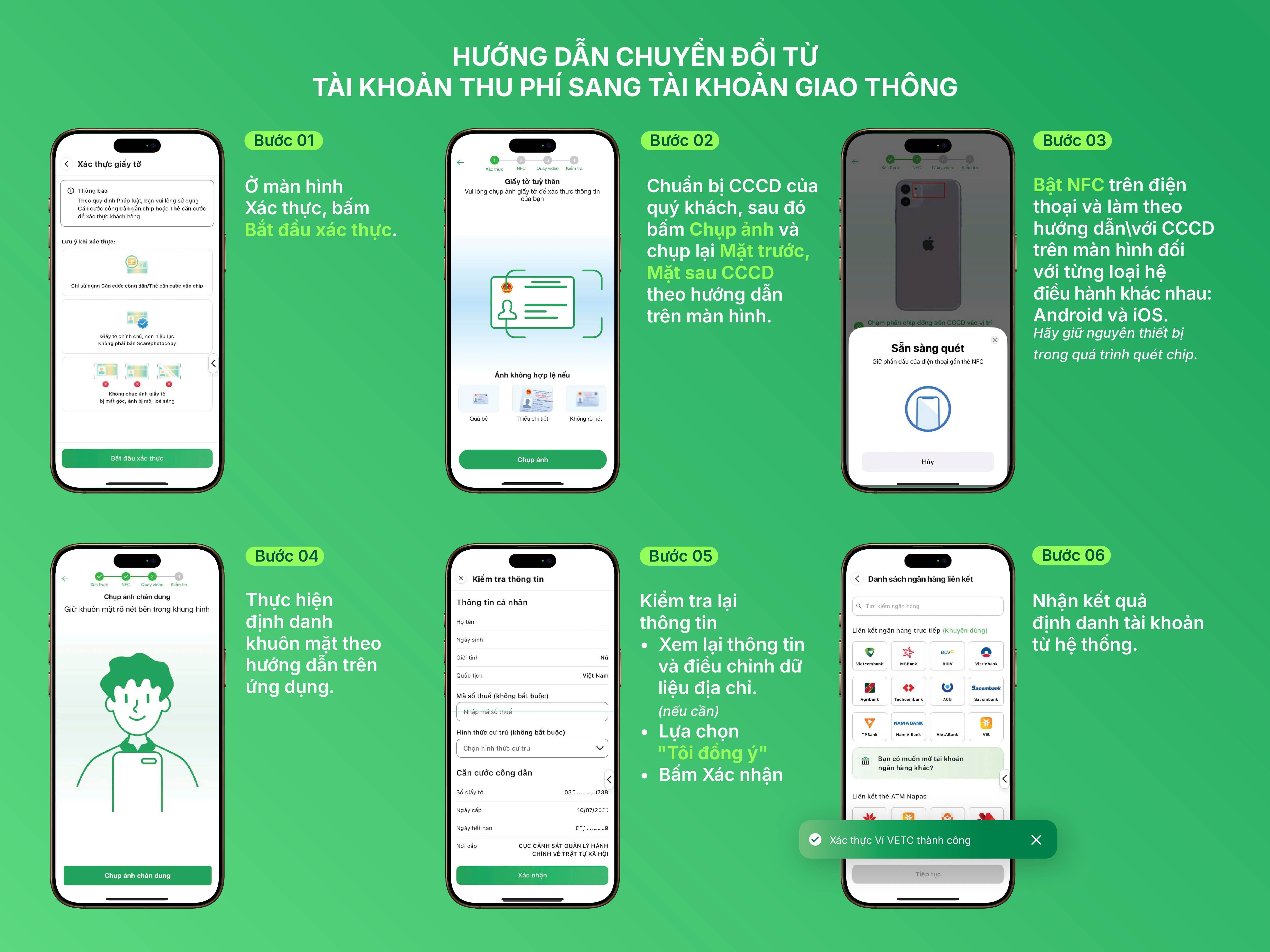 Để tránh gặp gián đoạn khi lưu thông qua trạm thu phí sau thời hạn quy định, Quý khách hàng của Vietcombank đang sử dụng dịch vụ của VETC/ePass hãy lưu ý thực hiện chuyển đổi TKGT và liên kết với tài khoản Vietcombank theo các bước dưới đây: