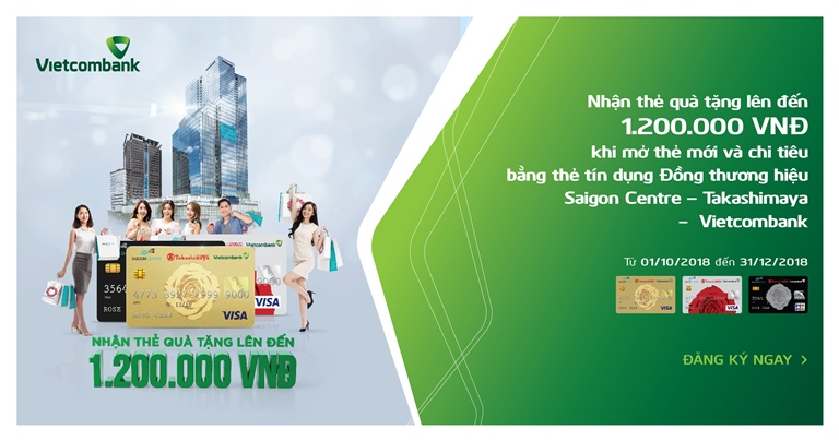 - Thẻ quà tặng là thẻ quà tặng Vietcombank Takashimaya hoặc thẻ quà tặng Vietcombank Saigon Centre.