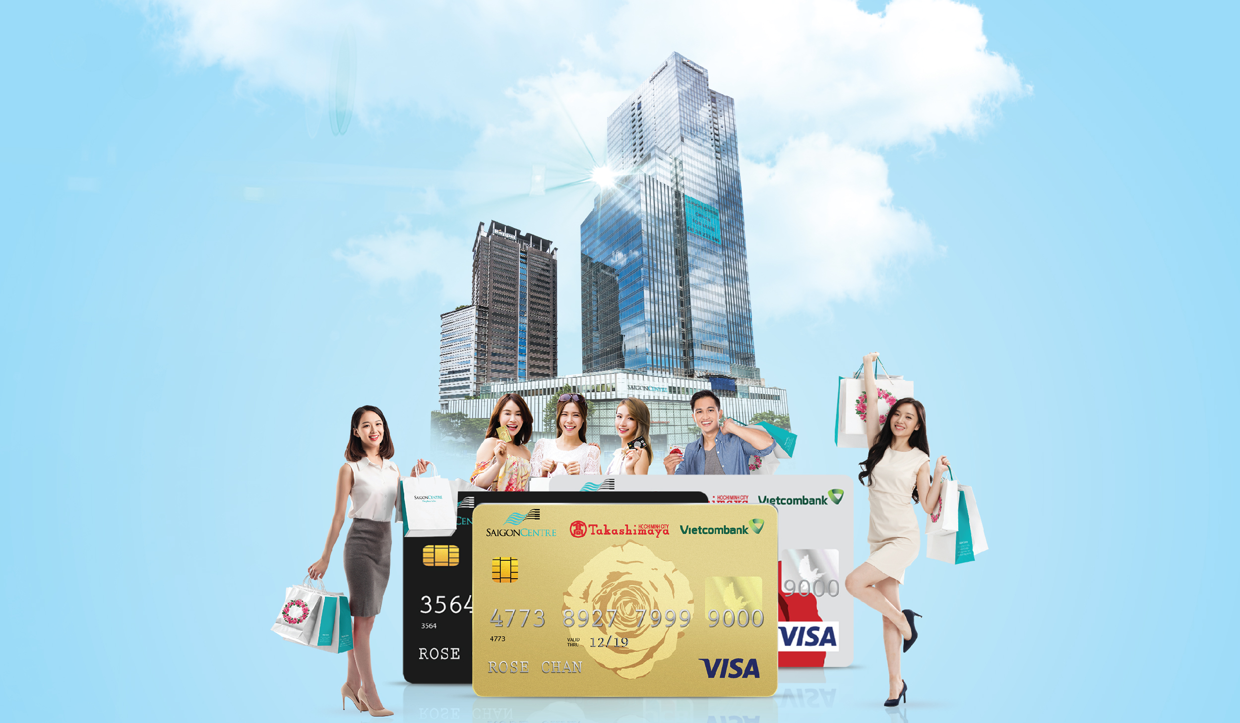 - Áp dụng cho giao dich chi tiêu thẻ tại Trung tâm thương mại Takashimaya và Saigon Centre.