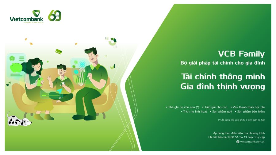 Tháng 12/2022, Ngân hàng TMCP Ngoại thương Việt Nam (Vietcombank) chính thức ra mắt Bộ giải pháp tài chính dành cho khách hàng gia đình - VCB Family. Với các sản phẩm tiết kiệm, sản phẩm thẻ, sản phẩm cho vay và tính năng trả nợ vay từ 02 tài khoản, bộ sản phẩm được kỳ vọng sẽ là công cụ hỗ trợ bố mẹ quản lý tài chính gia đình cũng như từng bước kiến tạo tương lai cho con.