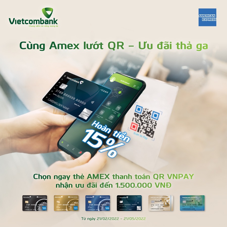Vietcombank thông báo kết quả trả thưởng chương trình “Cùng Amex lướt QR - Ưu đãi thả ga”
