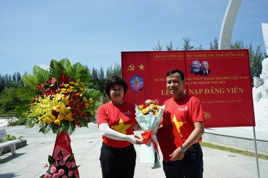 Trước cờ Tổ quốc, cờ Đảng, chân dung Chủ tịch Hồ Chí Minh và sự chứng chiến của hơn 50 đảng viên, CBNV Vietcombank Thủ Đức, buổi lễ kết nạp đảng càng ý nghĩa hơn khi lần đầu tiên Chi bộ Vietcombank Thủ Đức đón chào một đảng viên mới tại một “địa chỉ đỏ’’ - nơi khơi dậy niềm tự hào dân tộc và giáo dục, bồi đắp tình yêu biển đảo cho các thế hệ.
