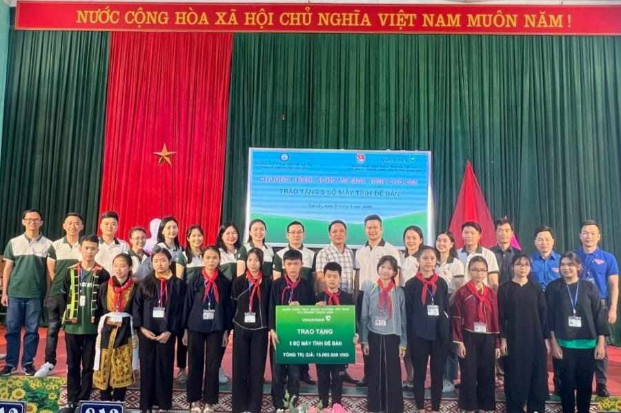 Đoàn TN Vietcombank Thăng Long và Vietcombank Lạng Sơn trao tặng 05 bộ máy tính cho đại diện Ban Giám hiệu Trường Phổ thông dân tộc nội trú THCS và THPT huyện Cao Lộc