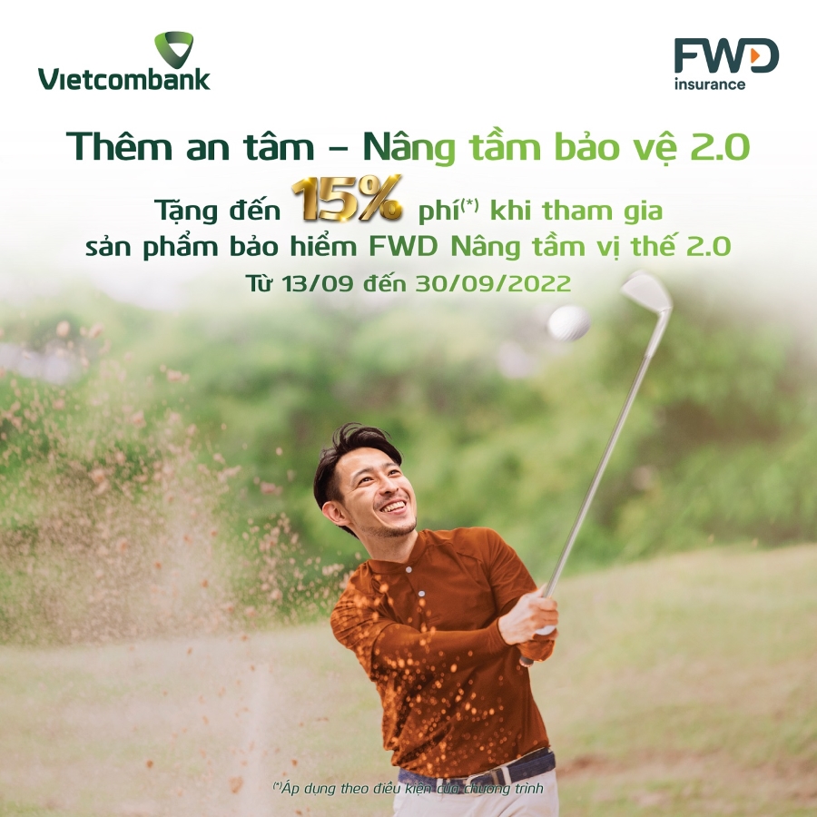 | “FWD Nâng tầm vị thế 2.0” là sản phẩm bảo hiểm liên kết đầu tư thế hệ mới, vừa được Vietcombank và FWD Việt Nam giới thiệu từ ngày 05/09/2022 vừa qua với nhiều ưu điểm gia tăng quyền lợi về đầu tư, đồng thời nâng mức bảo vệ lên đến 380% số tiền bảo hiểm. Sản phẩm được phân phối qua hơn 600 điểm giao dịch của Vietcombank trên toàn quốc. Tham khảo thêm thông tin về sản phẩm tại đây. |