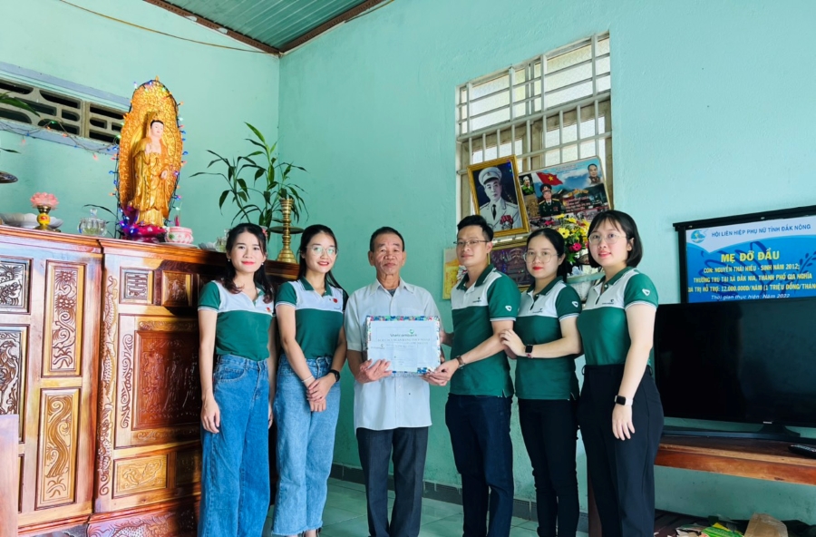Tiếp đó, vào ngày 26/7/2022, Đại diện BCH Công đoàn cơ sở và BCH chi đoàn cơ sở Vietcombank Đắk Nông cùng đại diện ĐVCĐ chi nhánh đã đến thăm hỏi, tặng quà 2 gia đình là ông Lê Khải, sinh năm 1946 và bà Phạm Thị Đồng, sinh năm 1939. Đây là những người thân của ĐVCĐ có công lao trong cuộc kháng chiến chống Mỹ, cứu nước và 5 người thân của ĐVCĐ là thương binh.