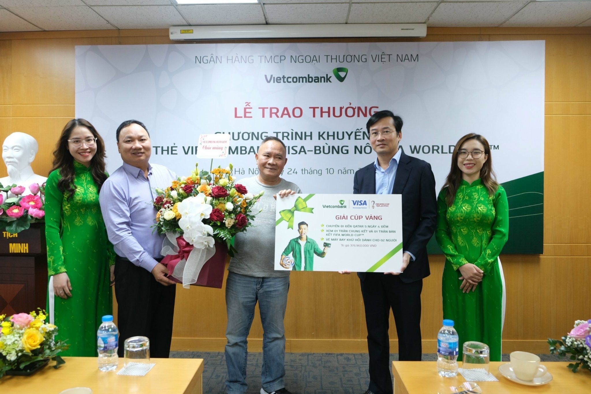 Kết quả tổng kết Chương trình khuyến mại, Vietcombank Hoàn Kiếm vinh dự và vui mừng khi là đơn vị có khách hàng trúng giải đặc biệt “Cúp Vàng” của chương trình là ông Nguyễn Tuấn Quang đã trở thành chủ nhân Giải thưởng 1 chuyến đi đến Quata 5 ngày 4 đêm xem trận Chung kết và 1 trân bán kết FIFA World Cup cùng vé máy bay khứ hồi dành cho 2 người.