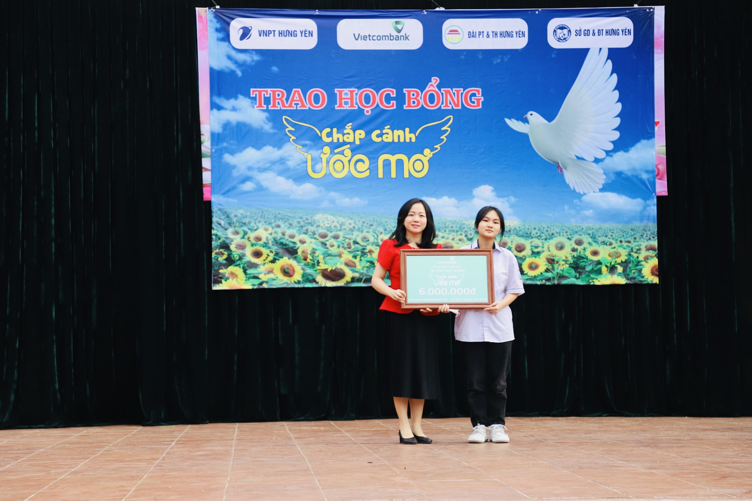 Tại chương trình, Vietcombank Hưng Yên đã trao học bổng 6 triệu đồng cho em Phương Nguyễn Nguyệt Anh.