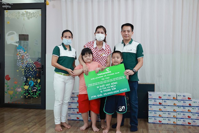 Hiểu được khó khăn của Trung tâm và hoàn cảnh gia đình các em học sinh, Vietcombank Leasing và Phòng ALM Vietcombank đã chung tay ủng hộ trung tâm và các em học sinh có hoàn cảnh khó khăn 10 suất học bổng trị giá 01 tháng học phí; 01 tivi 43 inch và 15 thùng sữa. Tổng trị giá hỗ trợ, ủng hộ là 25 triệu đồng.
