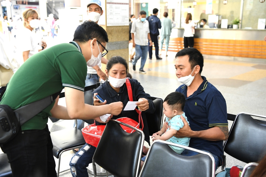 Đoàn thanh niên Vietcombank Sài Thành phát phiếu ăn miễn phí cho gia đình các bệnh nhi
