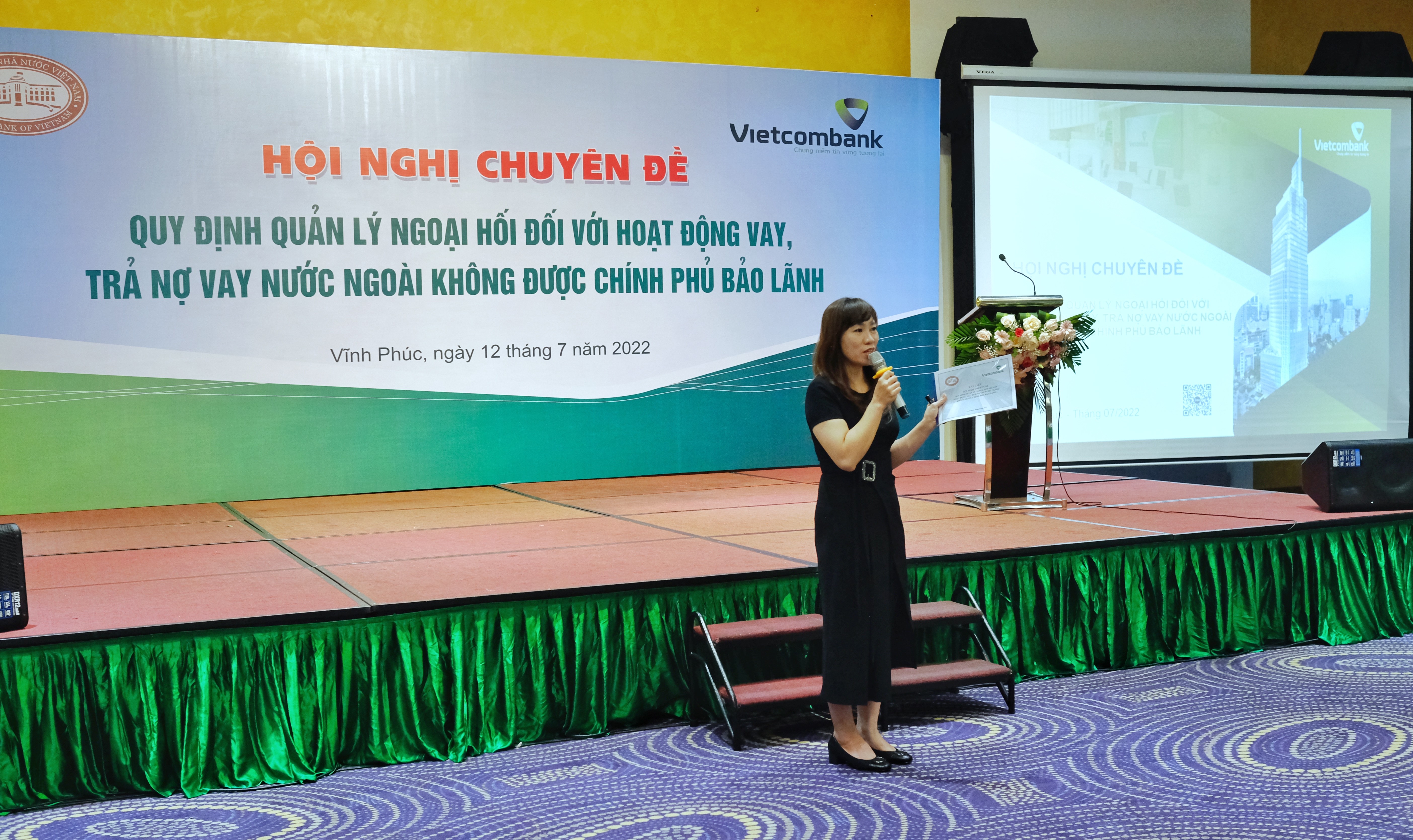 Hội nghị diễn ra thành công, được các doanh nghiệp FDI trên địa bàn quan tâm và đánh giá cao, góp phần giúp cho các khách hàng FDI của chi nhánh hiểu và nắm rõ hơn các quy định quản lý ngoại hối với hoạt động vay, trả nợ vay nước ngoài không được Chính phủ bảo lãnh, qua đó có thể áp dụng phù hợp với hoạt động kinh doanh của doanh nghiệp mình, đồng thời tránh được những rủi ro, vi phạm có thể gặp phải trong hoạt động này.