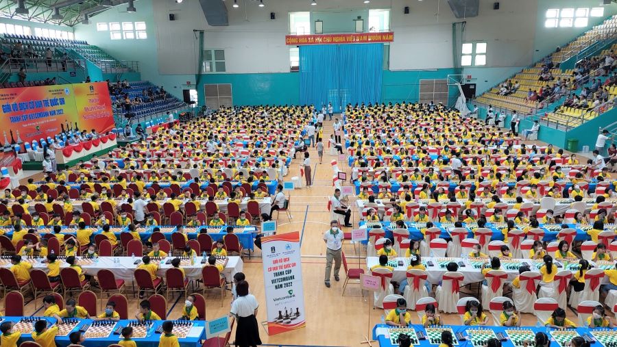 Quang cảnh tại sân thi đấu giải vô địch cờ vua trẻ quốc gia tranh cúp Vietcombank năm 2022