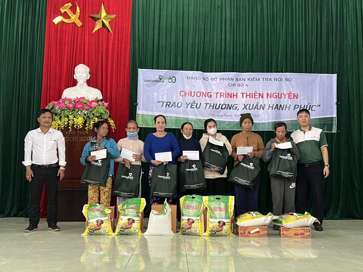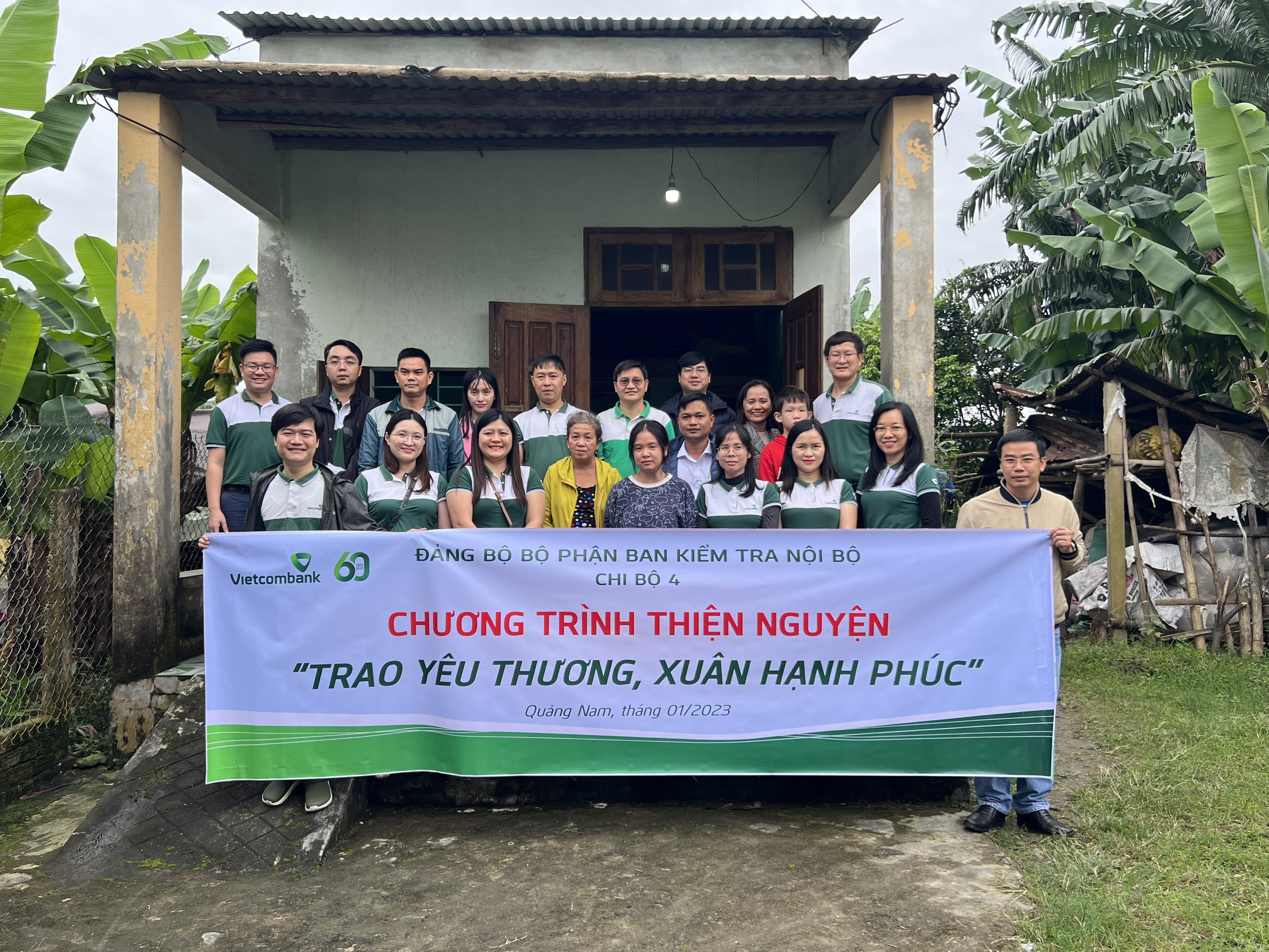 Hòa chung không khí hân hoan của cả nước đón Tết cổ truyền Xuân Quý Mão 2023, với tinh thần sẻ chia “tương thân tương ái”, ngày 07/01/2023, Chi bộ 4, Đảng bộ bộ phận Ban Kiểm tra nội bộ đã thực hiện chương trình thiện nguyện “Trao yêu thương, Xuân hạnh phúc” tại xã Đại Phong, huyện Đại Lộc, tỉnh Quảng Nam và tặng 25 suất quà (trị giá 28 triệu đồng) đến Mẹ Việt Nam anh hùng và các hộ nghèo trên địa bàn. Nguồn kinh phí đến từ sự đóng góp của tập thể Đảng viên, quần chúng Chi bộ 4 và các anh, chị nguyên là cán bộ phòng Kiểm tra nội bộ khu vực 3.