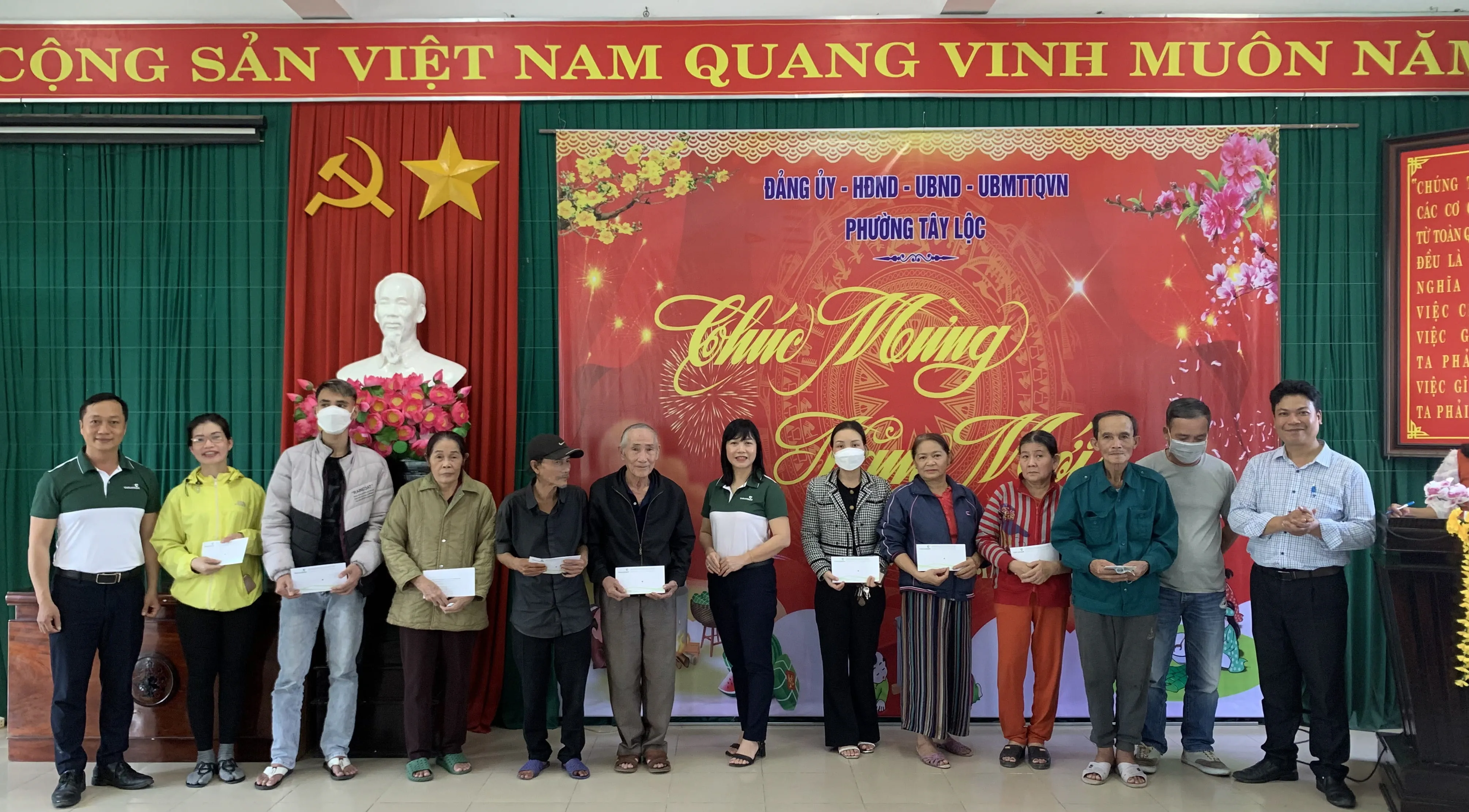 Đại diện Công đoàn cơ sở Vietcombank Huế tặng 20 suất quà Tết cho người nghèo tại phường Tây Lộc, thành phố Huế, tỉnh Thừa Thiên Huế
