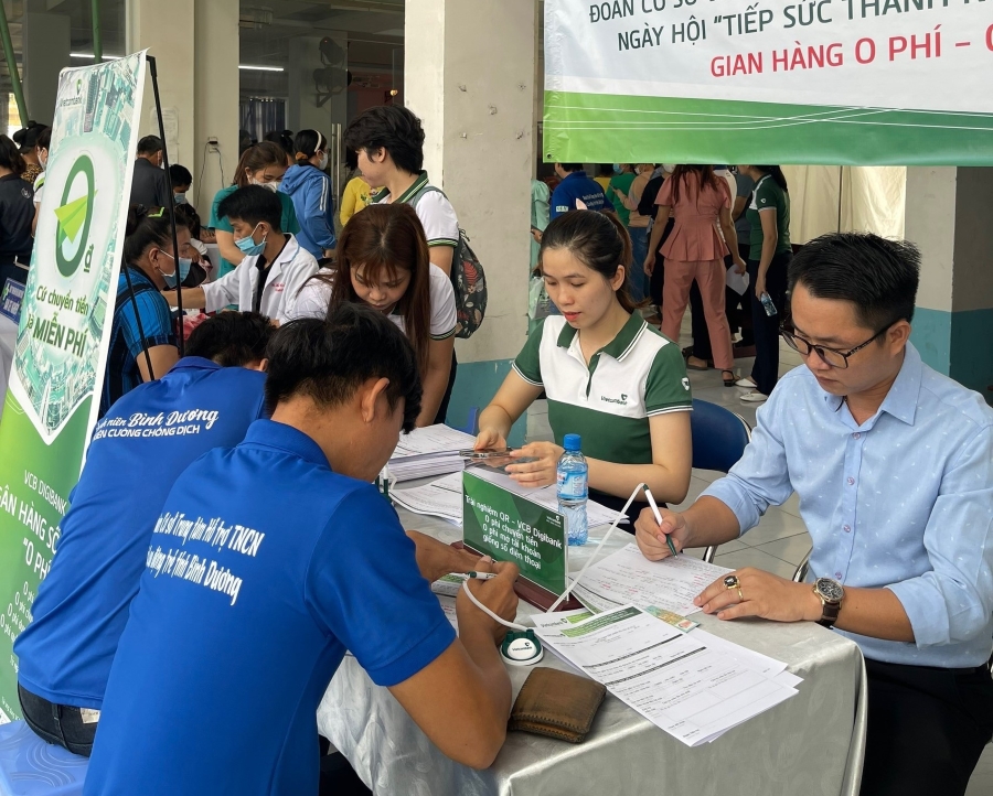 Tham gia chương trình, ĐCS BBD đã đồng hành cùng hội thi “Tiếng hát thanh niên công nhân” với 20 phần quà cho 20 thanh niên công nhân có hoàn cảnh khó khăn trải nghiệm dưới hình thức mã QR code, một phương thức thanh toán thông minh trong kỷ nguyên số 4.0. Tổng giá trị hỗ trợ chương trình là 15 triệu đồng. Bên cạnh đó, ĐCS BBD tổ chức “Gian hàng 0 đồng” với mong muốn truyền thông đến các doanh nghiệp và thanh niên công nhân trên địa bàn về các dịch vụ ngân hàng số của Vietcombank, qua đó mở mới tài khoản, hướng dẫn sử dụng dịch vụ Digibank.