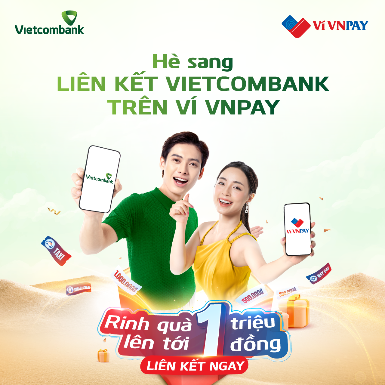 Theo đó, 100% khách hàng liên kết tài khoản Vietcombank trên ví VNPAY từ nay đến 05/07/2023 sẽ có cơ hội tham gia chương trình khuyến mại và được tự chọn 01 trong 05 gói quà hấp dẫn. Nếu là tín đồ của mua sắm trực tuyến, du lịch, di chuyển hoặc giải trí, đừng bỏ lỡ cơ hội nhận “deal” hời siêu đỉnh này!