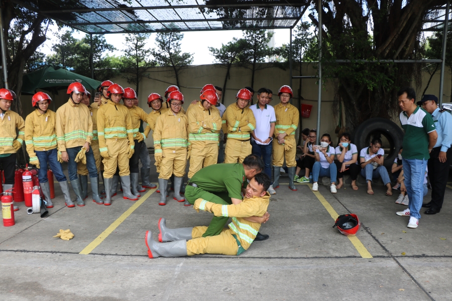 Chương trình được triển khai với các nội dung thiết thực như: tập huấn kỹ năng sử dụng bình chữa cháy CO2, bình bột, sử dụng lăng, vòi, họng chữa cháy vách tường; tập huấn mô phỏng đám cháy xảy ra tại tầng 6, quy mô đám cháy lớn, không có người mắc kẹt và đám cháy xảy ra tại quầy giao dịch tầng trệt, quy mô đám cháy nhỏ, có tài sản và người tại khu vực cháy. Đồng thời, triển khai đội PCCC cơ sở theo các tổ được phân công nhằm nhanh chóng tiếp cận đám cháy và thực hiện dập lửa (mô phỏng), hỗ trợ đưa tài sản, người đến vị trí an toàn.