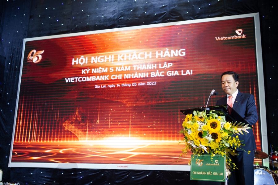 Phát biểu tại hội nghị, ông Đinh Văn Toàn - Bí thư Chi bộ, Giám đốc Vietcombank Bắc Gia Lai chia sẻ: “Trên chặng đường phát triển của chi nhánh không thể thiếu sự đồng hành, hợp tác, hỗ trợ và động viên nhiệt tình của khách hàng, đối tác, các cơ quan ban ngành và xã hội. Chúng tôi tin tưởng rằng những gì đã đạt được là thành quả chung của tất cả các bên và mong muốn được chia sẻ niềm vui cùng Quý khách hàng, đối tác với lòng tri ân sâu sắc nhất. Trong 5 năm qua, Vietcombank Bắc Gia Lai đã có rất nhiều hoạt động nổi bật trong mọi mặt kinh doanh, từ một chi nhánh trẻ hạng III đã được thăng hạng lên chi nhánh hạng II trong thời gian rất ngắn. Không những thế, Vietcombank Bắc Gia Lai vẫn đang giữ vững vị thế top đầu trong hệ thống 27 ngân hàng toàn tỉnh và khu vực miền Trung Tây Nguyên về hoạt động tín dụng và huy động vốn. Năm 2020, chi nhánh vinh dự nhận Cờ thi đua là chi nhánh hoàn thành tốt tiêu biểu nhiệm vụ kinh doanh. Cho đến hết quý I/2023, Vietcombank Bắc Gia Lai đang giữ vị trí top 5 trong tổng số 14 Chi nhánh thuộc khu vực miền Trung Tây Nguyên được ghi nhận hoàn thành vượt mức các chỉ tiêu kinh doanh được giao. Chúng tôi khẳng định sẽ tiếp tục theo đuổi những định hướng và chính sách đã xác định, luôn mạnh dạn có những đổi mới về phương pháp quản lý, phương án kinh doanh đễ hỗ trợ khách hàng, đối tác một cách tốt nhất”.