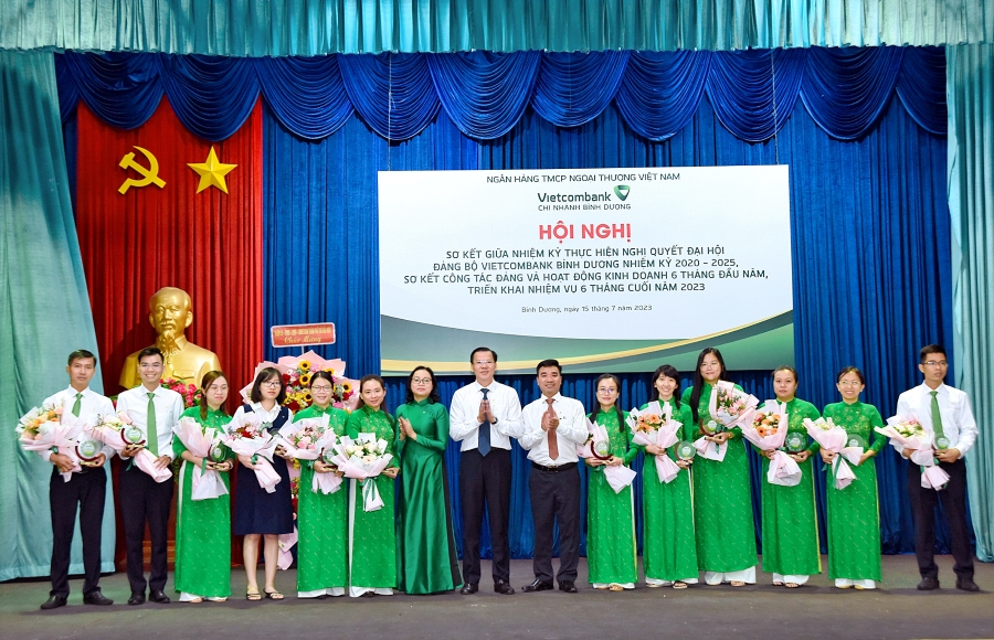 Ban Giám đốc Vietcombank Bình Dương tuyên dương, trao thưởng cho 12 cá nhân tiêu biểu 6 tháng đầu năm 2023