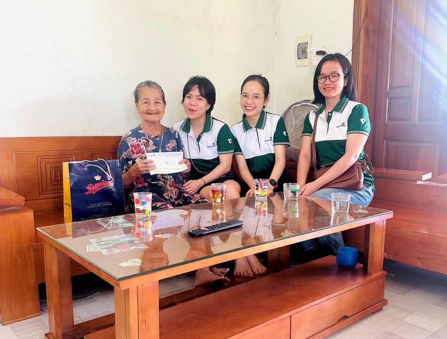 Đại diện BCH Công đoàn và ĐTN Vietcombank Đà Nẵng thăm mẹ VNAH Lê Thị Châu tại huyện Quế Sơn, tỉnh Quảng Nam