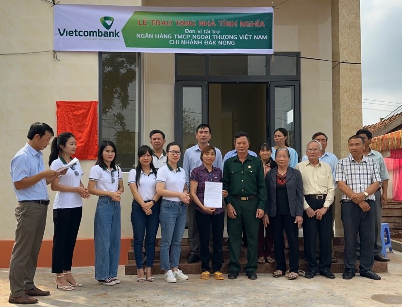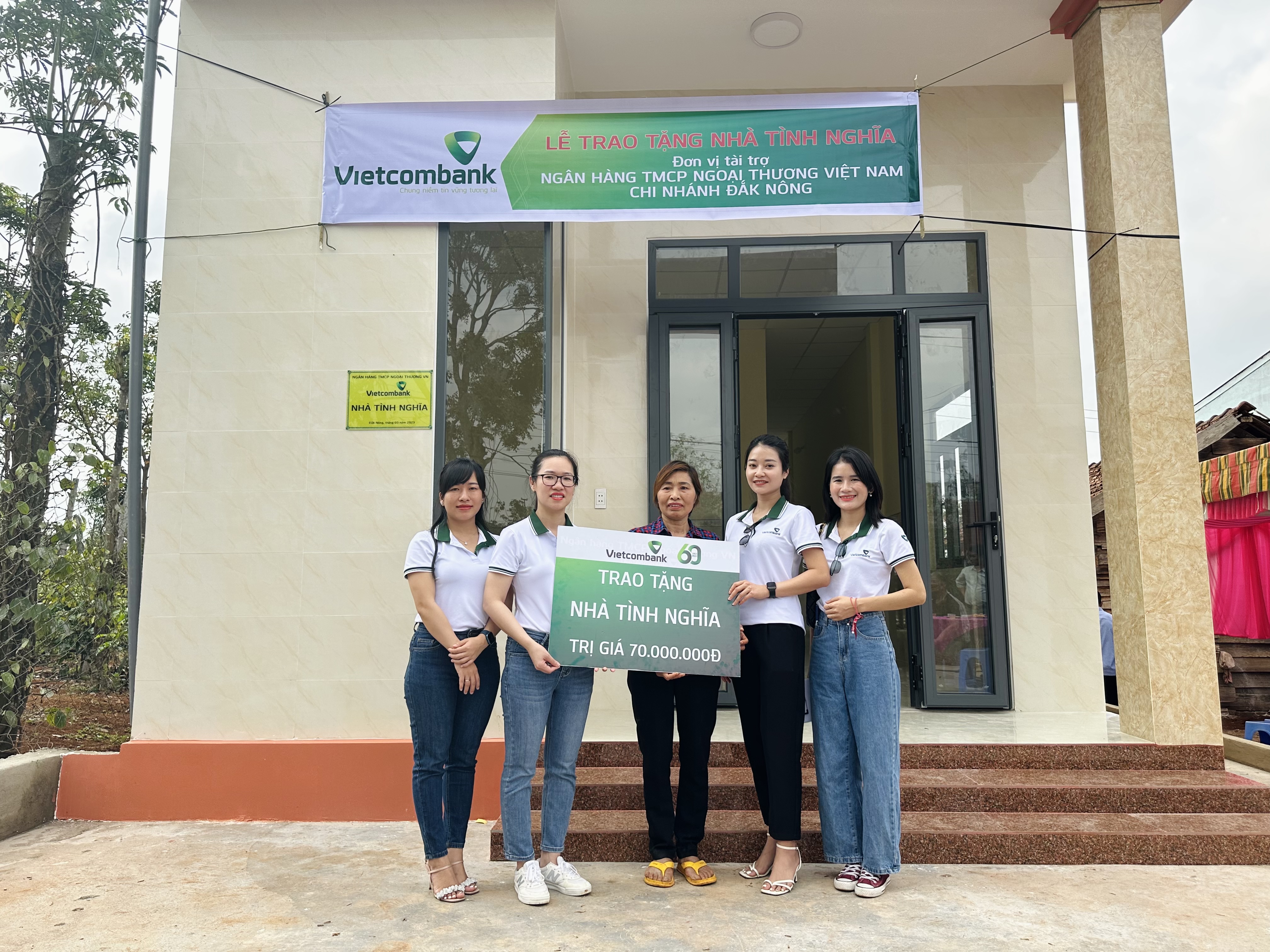 Trong dấu ấn thành công của Vietcombank Đăk Nông nói riêng và toàn hệ thống Vietcombank nói chung không thể thiếu sự ủng hộ, giúp đỡ, phối hợp có hiệu quả của các cấp ủy đảng, chính quyền và cơ quan, ban ngành có liên quan. Vì vậy, bên cạnh nhiệm vụ kinh doanh, một trong những giá trị cốt lõi trong văn hóa doanh nghiệp của toàn hệ thống Vietcombank là thực hiện tốt trách nhiệm xã hội thông qua công tác đền ơn đáp nghĩa, ủng hộ đồng bào khó khăn, trao tặng nhà tình nghĩa cho các gia đình có công với cách mạng.