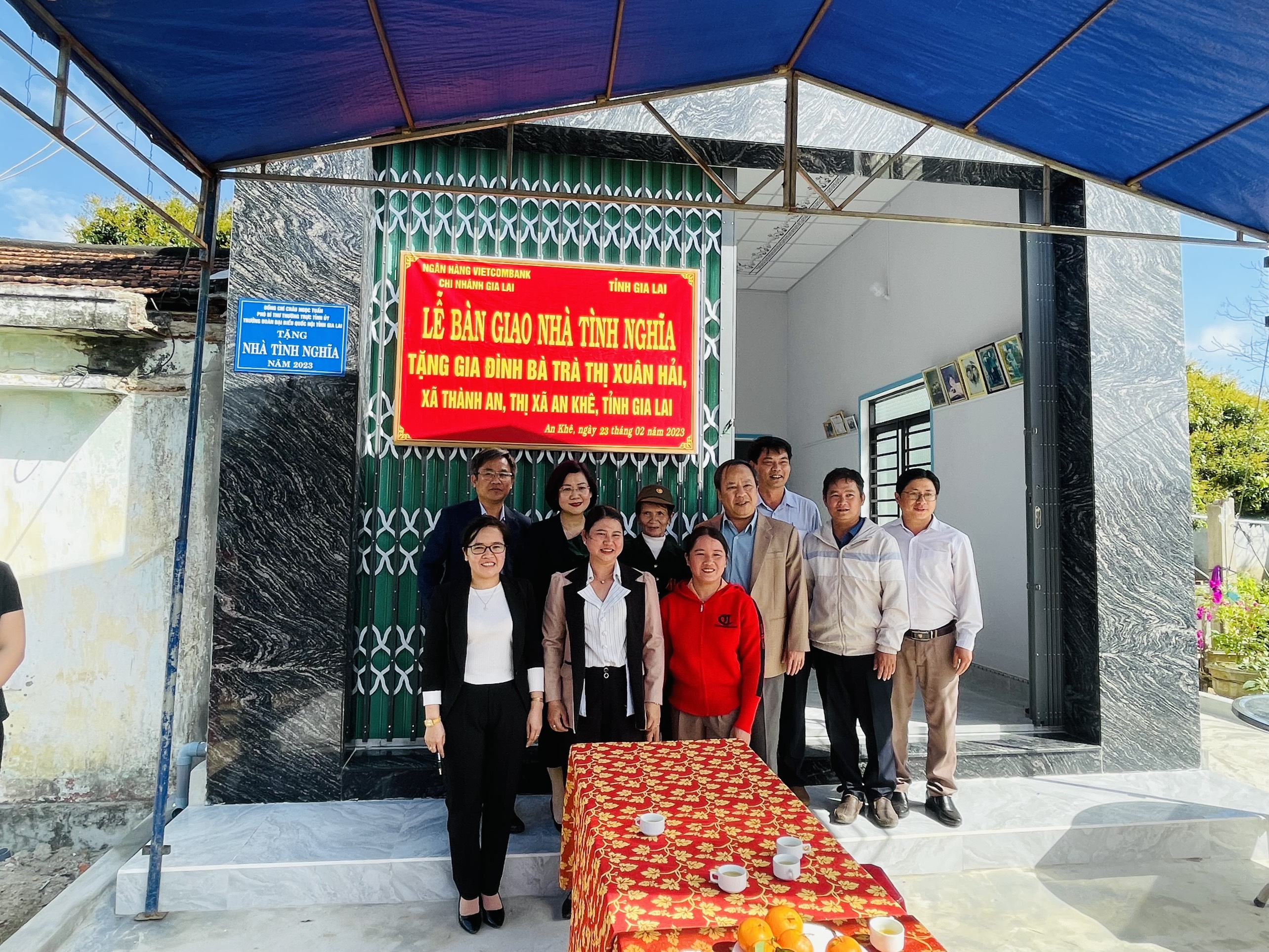 Ngày 23/02/2023, thị ủy An Khê tỉnh Gia Lai phối hợp với Vietcombank Gia Lai tổ chức lễ trao tặng nhà tình nghĩa cho gia đình bà Trà Thị Xuân Hải - thương binh hạng 4/4 tại xã Thành An, thị xã An Khê, tỉnh Gia Lai. Tới tham dự buổi lễ có đồng chí Châu Ngọc Tuấn - Phó Bí thư thường trực Tỉnh ủy Gia Lai, Trưởng đoàn đại biểu quốc hội tỉnh Gia Lai; bà Đỗ Thị Việt Hằng - Bí thư Đảng ủy, Giám đốc Vietcombank Gia Lai; đại diện lãnh đạo chính quyền địa phương và đại diện gia đình bà Hải cùng bà còn lối xóm.