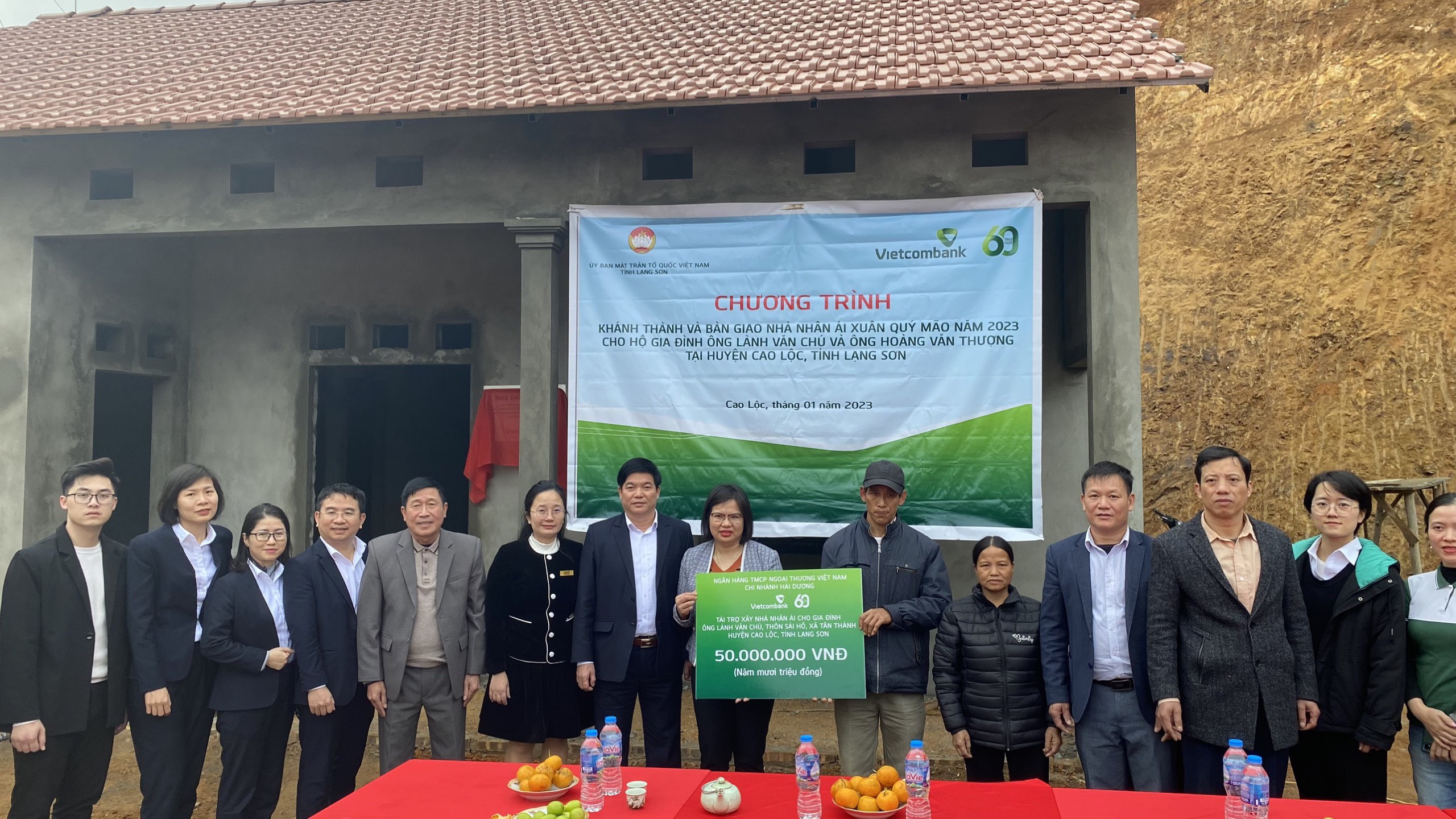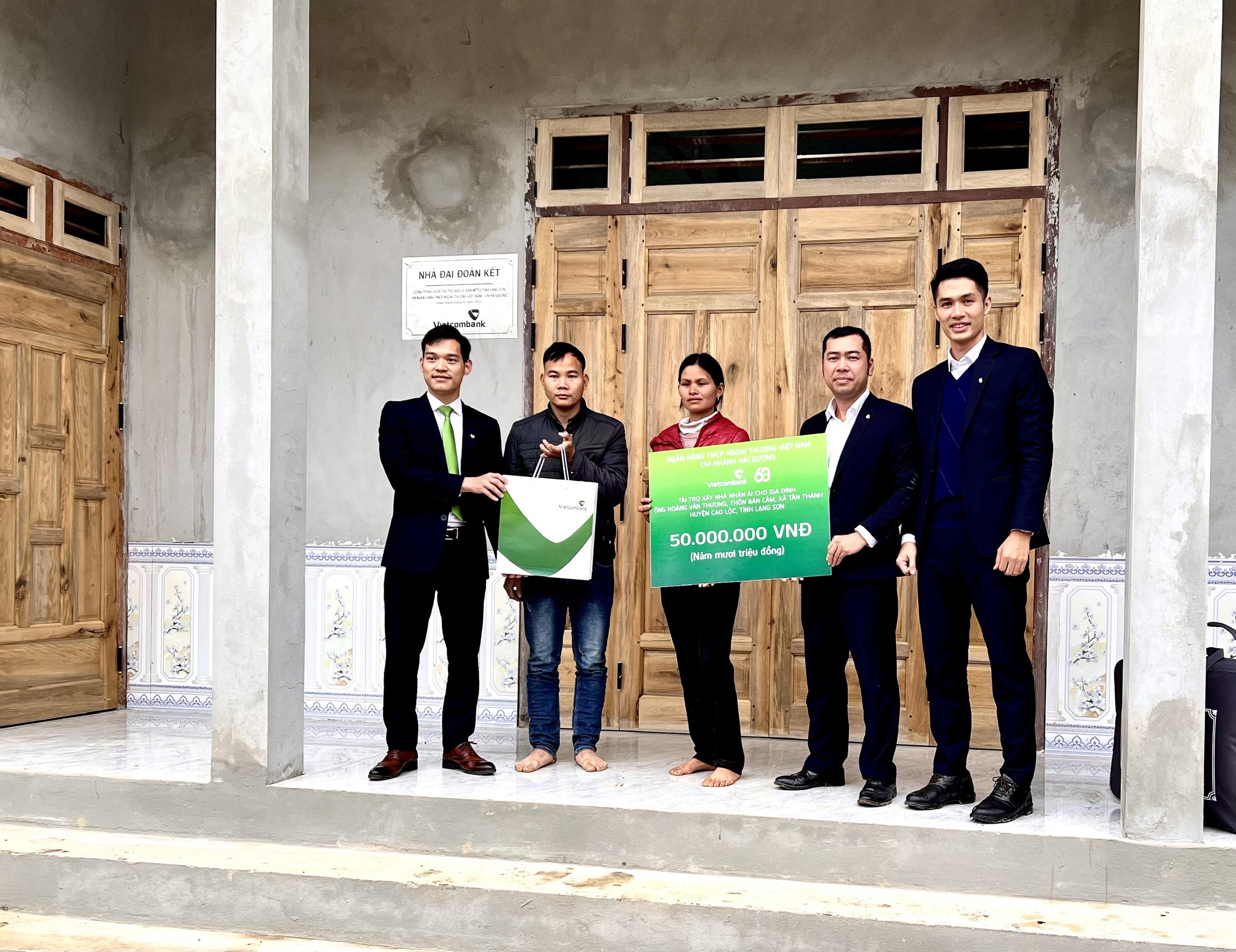 Nằm trong chuỗi sự kiện hướng tới kỷ niệm 20 năm thành lập chi nhánh (17/3/2003 - 17/3/2023), ngày 11/01/2023, Vietcombank Hải Dương đã phối hợp với Ủy ban Mặt trận Tổ quốc tỉnh Lạng Sơn tổ chức lễ bàn giao 3 căn nhà đại đoàn kết cho 3 hộ nghèo đặc biệt khó khăn về nhà ở tại các xã miền núi xa xôi và xã giáp khu vực biên giới thuộc tỉnh Lạng Sơn, gồm gia đình ông Lành Văn Chú tại thôn Sài Hồ; gia đình ông Hoàng Văn Thượng tại thôn Bản Cắm, xã Tân Thành, huyện Cao Lộc và gia đình ông Vi Văn Dụng tại xã Yên Khoái, huyện Lộc Bình, tỉnh Lạng Sơn. Số tiền tài trợ mỗi căn nhà trị giá 50 triệu đồng.