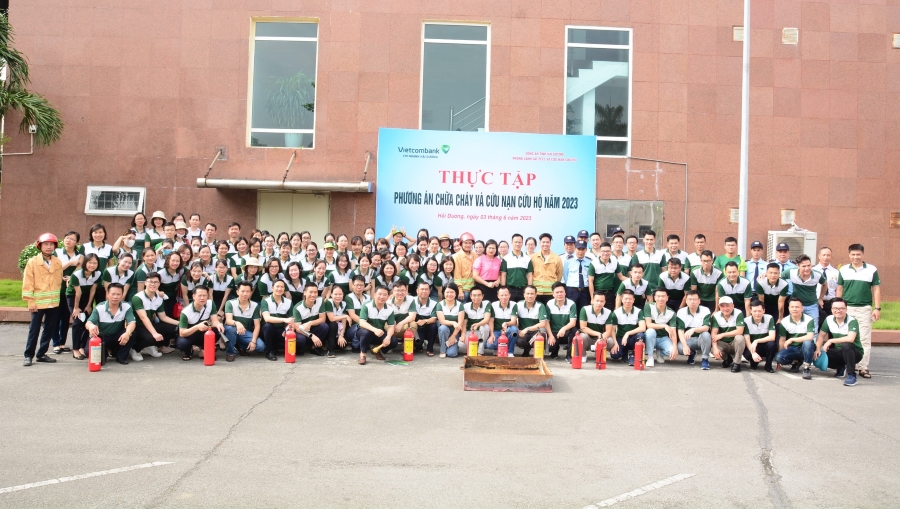 Nhằm thực hiện tốt công tác phòng cháy và chữa cháy (PCCC), đồng thời nâng cao sự phối hợp chỉ huy về chiến thuật, kỹ thuật chữa cháy và cứu nạn, cứu hộ (CNCH) của lực lượng chữa cháy cơ sở, ngày 03/6/2023, Vietcombank Hải Dương đã tổ chức thực tập về công tác PCCC&CNCH với sự tham gia của Ban Giám đốc, toàn thể cán bộ nhân viên và toàn bộ lực lượng bảo vệ.
