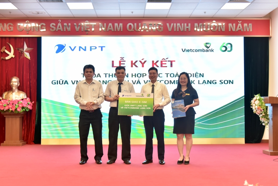 Phát huy kết quả này, tại lễ ký kết, VNPT Lạng Sơn đã bàn giao e-sim cho toàn thể cán bộ Vietcombank Lạng Sơn để sử dụng phục vụ công việc.