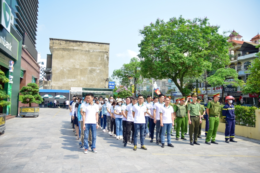 Tình huống giả định, xuất hiện đám cháy tại khu giao dịch tầng 1. Đây là khu vực tập trung đông người đến giao dịch và liên hệ làm việc. Sau khi phát hiện đám cháy, lực lượng chữa cháy tại chỗ đã nhanh chóng điện cho số điện thoại 114 để báo vụ việc, đồng thời tại hiện trường toàn bộ nhân viên ngân hàng đã nhanh chóng di chuyển nạn nhân, tài sản ra khu vực an toàn; tiến hành các hoạt động chữa cháy tại chỗ chờ lực lượng phòng cháy, chữa cháy chuyên nghiệp tới hỗ trợ.