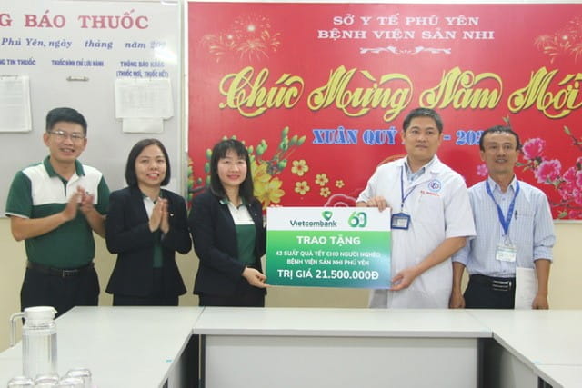 Nhân dịp Xuân Quý Mão năm 2023, Ngân hàng TMCP Ngoại thương Việt Nam - Chi nhánh Phú Yên (Vietcombank Phú Yên) đến thăm hỏi, động viên và trao 284 suất quà Tết cho các bệnh nhân có hoàn cảnh khó khăn đang được chăm sóc, điều trị tại Bệnh viện Đa Khoa tỉnh Phú Yên và Bệnh viện Sản - Nhi Phú Yên. Mỗi suất quà có giá trị 500 nghìn đồng với tổng trị giá quà tặng là 142 triệu đồng.