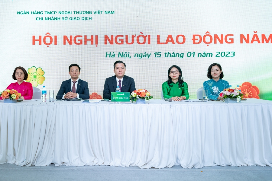 Phát biểu chỉ đạo tại Hội nghị, đ/c Đỗ Việt Hùng - Phó Bí thư thường trực Đảng ủy, thành viên HĐQT Vietcombank đã ghi nhận và biểu dương những kết quả đạt được của Vietcombank Sở giao dịch trong năm 2022. Nhờ có những kết quả nổi trội trong hoạt động kinh doanh, Vietcombank nói chung và chi nhánh Sở giao dịch nói riêng luôn đảm bảo đầy đủ quyền lợi hợp pháp và chất lượng cuộc sống cho cán bộ nhân viên. Năm 2022, Vietcombank tiếp tục khẳng định vị thế là ngân hàng có môi trường làm việc hấp dẫn nhất khi được bình chọn xếp thứ 1 toàn ngành ngân hàng, xếp thứ 3 toàn thị trường Việt Nam và trong Top 50 doanh nghiệp Việt có thương hiệu nhà tuyển dụng hấp dẫn nhất. Đóng góp vào kết quả chung này, chi nhánh Sở giao dịch đã nỗ lực tạo dựng và duy trì môi trường làm việc tốt nhất, chăm lo chu đáo, tạo điều kiện tốt nhất về cả vật chất và tinh thần, cân bằng cuộc sống và công việc cho mỗi cán bộ nhân viên yên tâm công tác và cống hiến. Công tác an sinh xã hội đã được Ban Giám đốc và BCH Công đoàn Sở giao dịch quan tâm thực hiện, thể hiện trách nhiệm xã hội của doanh nghiệp đối với cộng đồng.