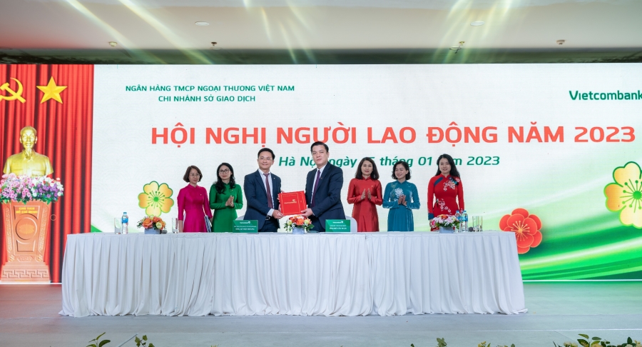 Về phía Vietcombank Sở giao dịch có ông Hồ Văn Tuấn - UV BCH Đảng bộ, Bí thư Đảng ủy, Giám đốc chi nhánh Sở giao dịch; ông Lê Việt Hoàng - Phó Giám đốc, Chủ tịch Công đoàn; các ông/bà là Ủy viên BCH Đảng bộ, thành viên Ban Giám đốc, BCH Công đoàn cùng toàn thể cán bộ đoàn viên tại Vietcombank Sở giao dịch.