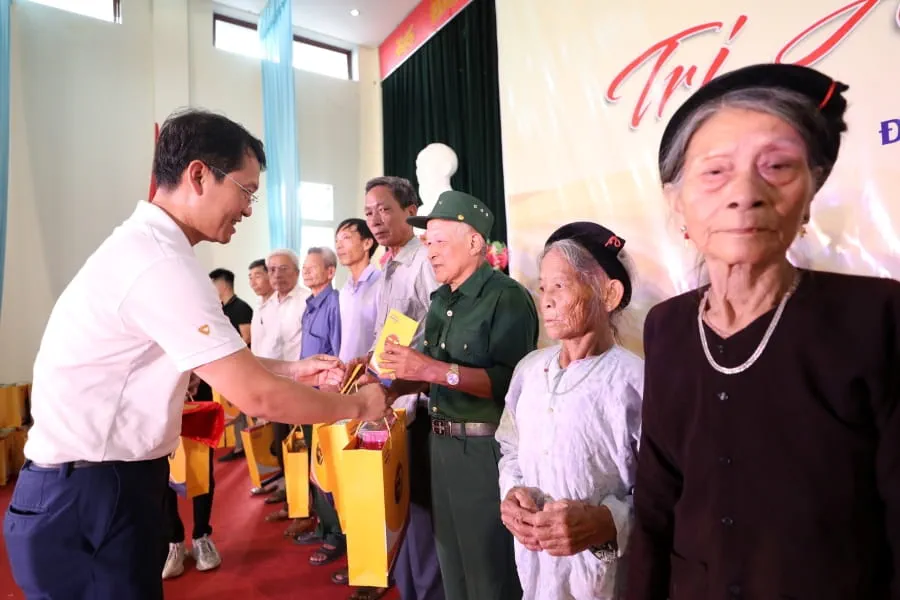 Ông Nguyễn Hải Tứ - Phó Giám đốc Vietcombank Tây Hồ tặng quà cho các thương, bệnh binh, gia đình liệt sĩ tại xã Chí Đám, Đoan Hùng, Phú Thọ