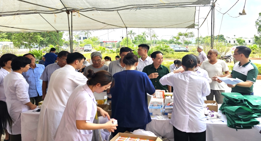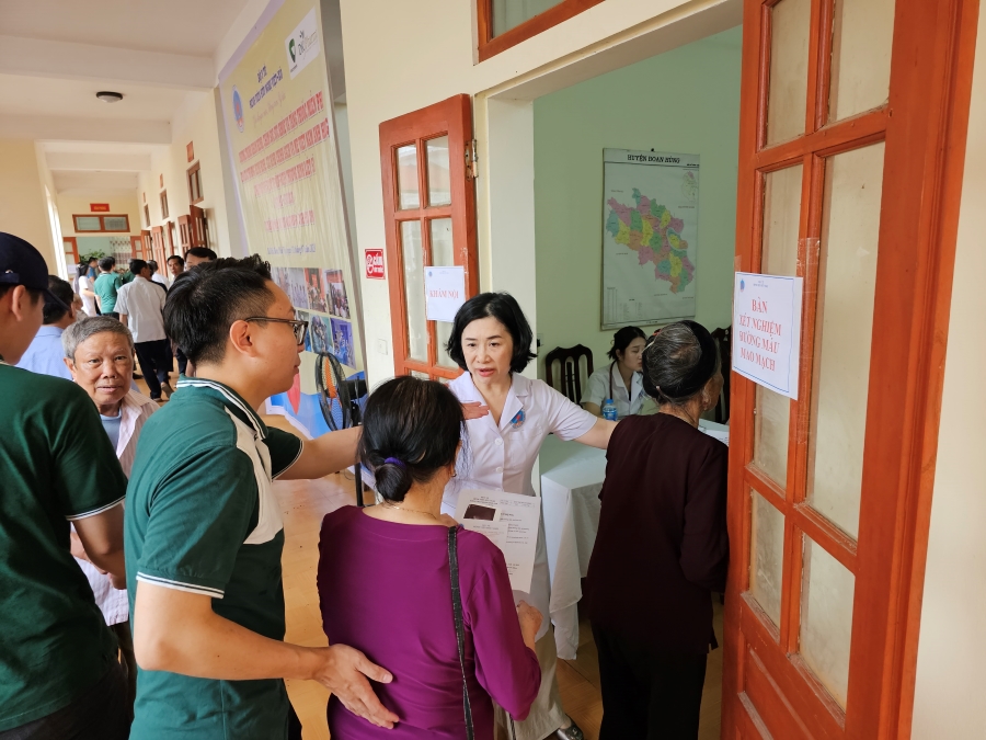 Một số hình ảnh Vietcombank Tây Hồ và các bác sỹ bệnh viện Hữu Nghị hướng dẫn và khám bệnh cho bà con.