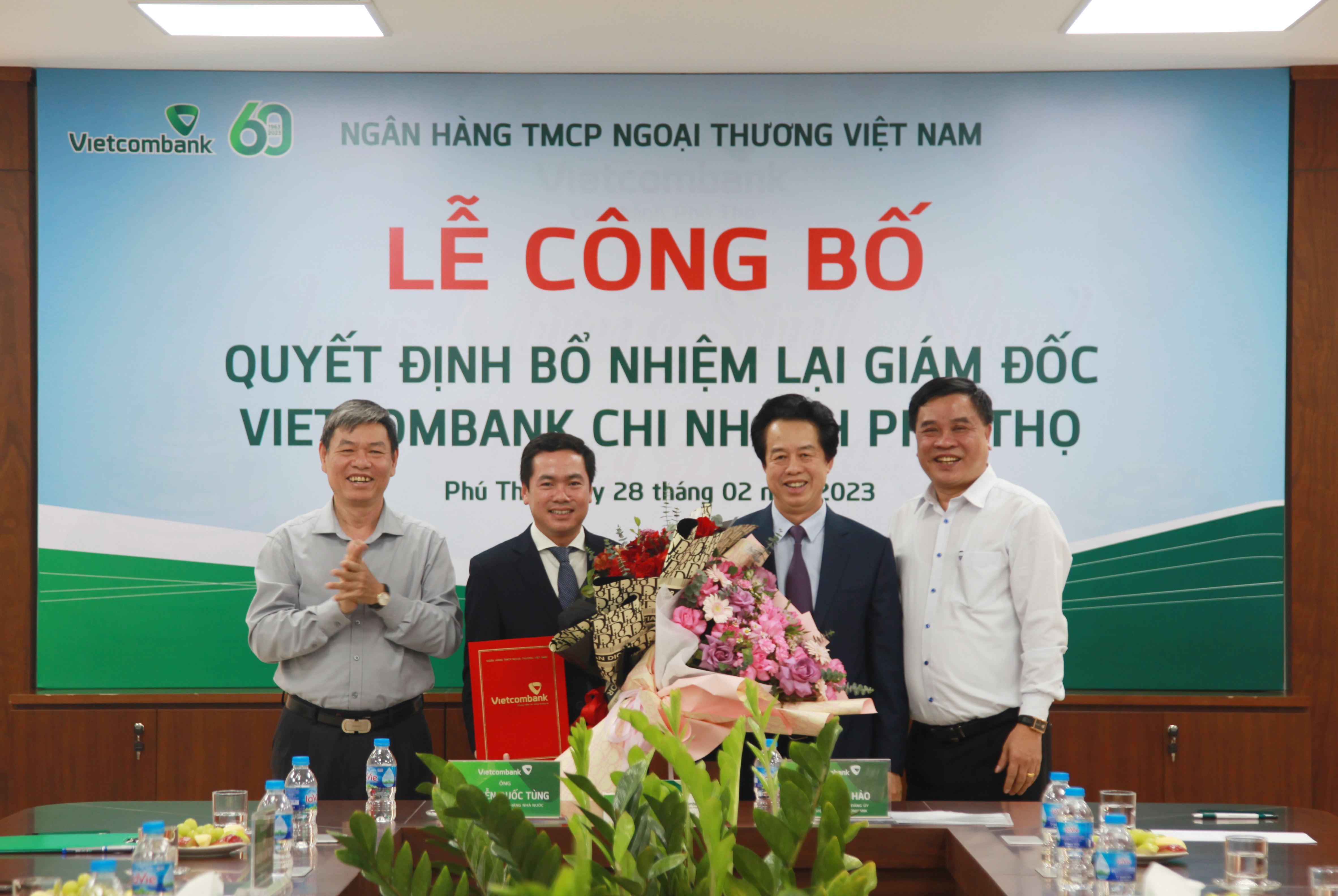 Tại buổi lễ, đại diện Ban Tổ chức và Nhân sự Vietcombank đã công bố quyết định của Hội đồng quản trị về việc bổ nhiệm lại ông Văn Tiến Thành giữ chức vụ Giám đốc Vietcombank Phú Thọ kể từ ngày 01/03/2023.