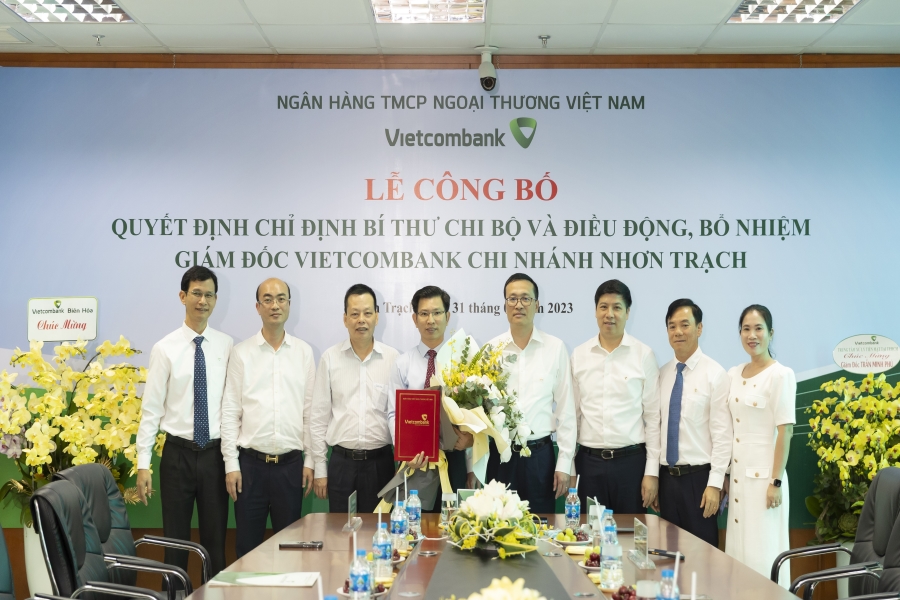 Tại buổi Lễ, ông Hồng Quang - Ủy viên Ban Thường vụ, Trưởng Ban Tổ chức Đảng ủy Vietcombank, Thành viên HĐQT kiêm Giám đốc Khối Nhân sự đã công bố quyết định số 2411-QĐ/ĐU ngày 30/5/2023 của Ban Thường vụ Đảng ủy Vietcombank về việc chỉ định nhân sự tham gia Ban Chấp hành và giữ chức Bí thư Chi bộ Vietcombank Nhơn Trạch nhiệm kỳ 2020 - 2025. Tiếp theo, ông Đặng Bình Nguyên - Trưởng Ban Tổ chức và nhân sự Vietcombank đã công bố quyết định số 1138/QĐ-VCB-TCNS ngày 30/5/2023 của Chủ tịch HĐQT Vietcombank về việc điều động và bổ nhiệm ông Trần Minh Phú - Phó Bí thư Chi bộ, Phó Giám đốc Vietcombank Thủ Đức giữ chức vụ Giám đốc Vietcombank Nhơn Trạch kể từ ngày 01/06/2023 thay cho ông Nguyễn Xuân Cảnh - Bí thư Chi bộ, Giám đốc Vietcombank Nhơn Trạch nghỉ chế độ hưu trí.