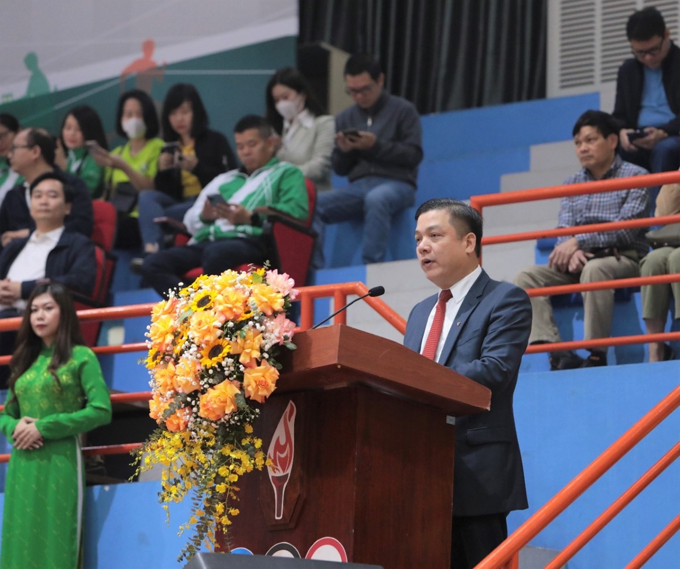 Ông Hồ Văn Tuấn - UV BCH Đảng bộ Vietcombank, Bí thư Đảng ủy, Giám đốc Sở giao dịch, Trưởng Ban Tổ chức Hội thao Khu vực 3 phát biểu khai mạc