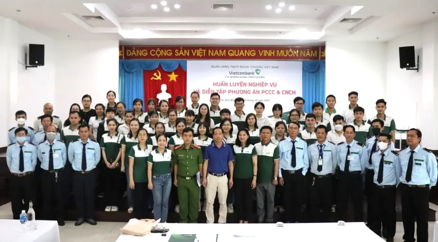 Sáng ngày 08/10/2023, Vietcombank Đông Bình Dương đã phối hợp với phòng cảnh sát phòng cháy chữa cháy và cứu nạn cứu hộ (PCCC&CNCH) số 1 - tỉnh Bình Dương tổ chức buổi tập huấn nghiệp vụ và diễn tập phương án PCCC&CNCH năm 2023 với sự tham dự của Ban giám đốc cùng toàn thể CBNV chi nhánh.
