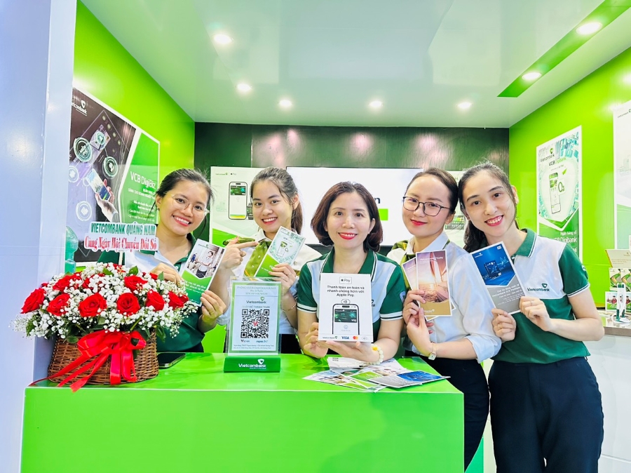 Tại sự kiện, Vietcombank Quảng Nam đã quảng bá và giới thiệu với khách hàng và người dân các thành tựu mới nhất về sản phẩm dịch vụ ngân hàng số như: VCB Digibank, VCB Digibiz, VCB Cashup cùng các loại thẻ ghi nợ, thẻ tín dụng…