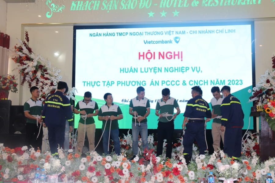 Trong 02 ngày 18-19/11/2023, Vietcombank Chí Linh phối hợp với Công an thành phố Chí Linh, Công ty bảo vệ Sao Vàng và phòng cảnh sát PCCC&CNCH thuộc công an tỉnh Hải Dương tổ chức tập huấn và diễn tập 2 nội dung về “Phòng chống tội phạm, trộm cướp, khủng bố”; “Phòng cháy, chữa cháy và cứu nạn, cứu hộ” cho toàn thể cán bộ nhân viên.