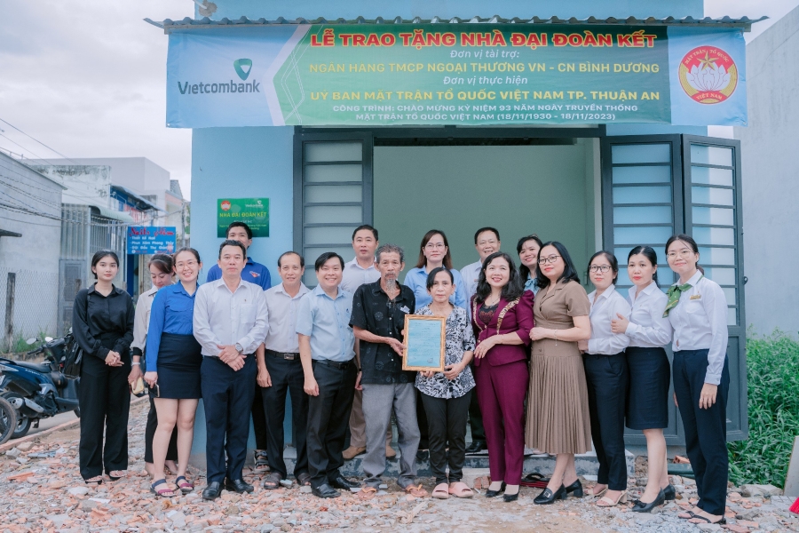 Ngày 17/11/2023, Vietcombank Bình Dương đã phối hợp với Ban vận động Quỹ vì người nghèo tỉnh Bình Dương cùng Ủy ban Mặt trận Tổ quốc thành phố Thuận An tổ chức lễ trao tặng và bàn giao 5 căn nhà đại đoàn kết cho 5 hộ gia đình có hoàn cảnh khó khăn trên địa bàn.