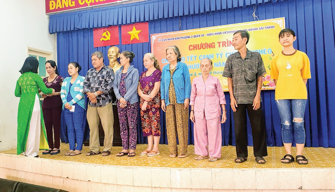 Với mong muốn “chung tay vì một mùa Tết ấm tình” cùng những hoàn cảnh khó khăn trên địa bàn Quận 5, Quận 10 (TP. Hồ Chí Minh) và các bệnh nhân đang phải điều trị tại các bệnh viện, Vietcombank Sài Thành đã thực hiện các chương trình như: Tết yêu thương - trao quà Tết cho người bệnh khó khăn đang điều trị tại Bệnh viện Đại học Y Dược TP. Hồ Chí Minh; Tặng quà cho hộ khó khăn nhân dịp Tết Nguyên đán Canh Tý 2020; Chăm lo Tết Canh Tý cho hộ nghèo; Thăm Mẹ Việt Nam Anh hùng ở Củ Chi,…