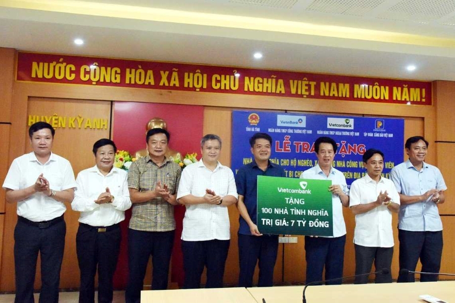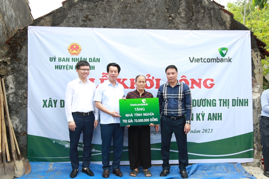 Tại chương trình, ông Nguyễn Mỹ Hào - UV BTV Đảng ủy, Thành viên HĐQT Vietcombank đã trao biểu trưng hỗ trợ kinh phí xây dựng 100 căn nhà tình nghĩa cho hộ nghèo, hộ có hoàn cảnh khó khăn, gia đình chính sách với tổng trị giá 7 tỷ đồng. Vietcombank tin tưởng với gói tài trợ 100 căn nhà nhân ái này, người nghèo và các gia đình chính sách trên địa bàn tỉnh Hà Tĩnh sẽ cải thiện từng bước đời sống về vật chất và tinh thần.
