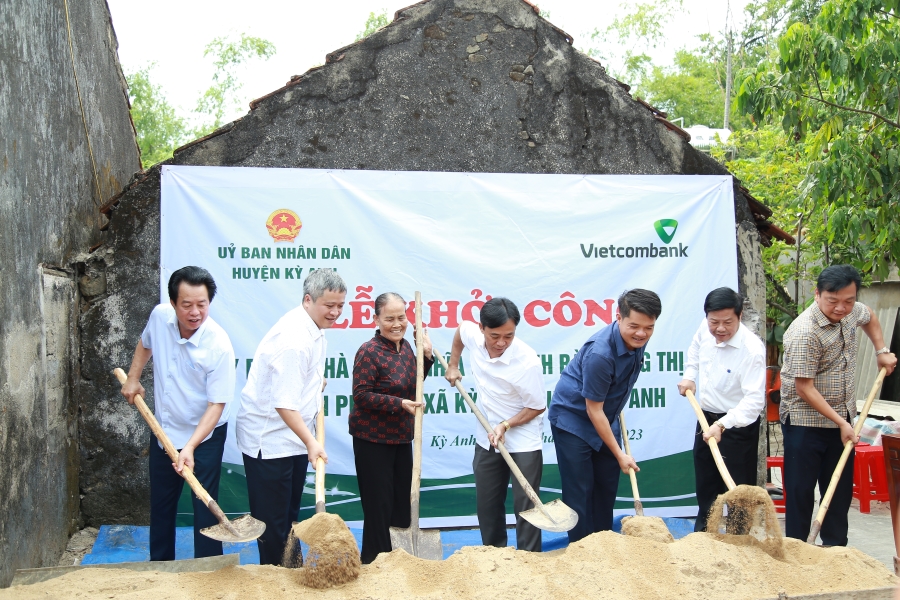 Cũng trong buổi sáng, đoàn đã đến dự lễ khởi công xây nhà tình nghĩa cho gia đình bà Dương Thị Dính (thôn Phú Lợi, xã Kỳ Phú, huyện Kỳ Anh), là thương binh 4/4 và có hoàn cảnh khó khăn. Ngôi nhà được xây dựng trên diện tích hơn 60 m­­2, với tổng kinh phí hơn 150 triệu đồng. Trong đó, Vietcombank hỗ trợ 70 triệu đồng, số tiền còn lại do người thân, gia đình quyên góp. Cấp ủy, chính quyền địa phương cũng sẽ huy động lực lượng để tham gia đóng góp ngày công, hỗ trợ gia đình bà sớm hoàn thành ngôi nhà để ổn định cuộc sống.