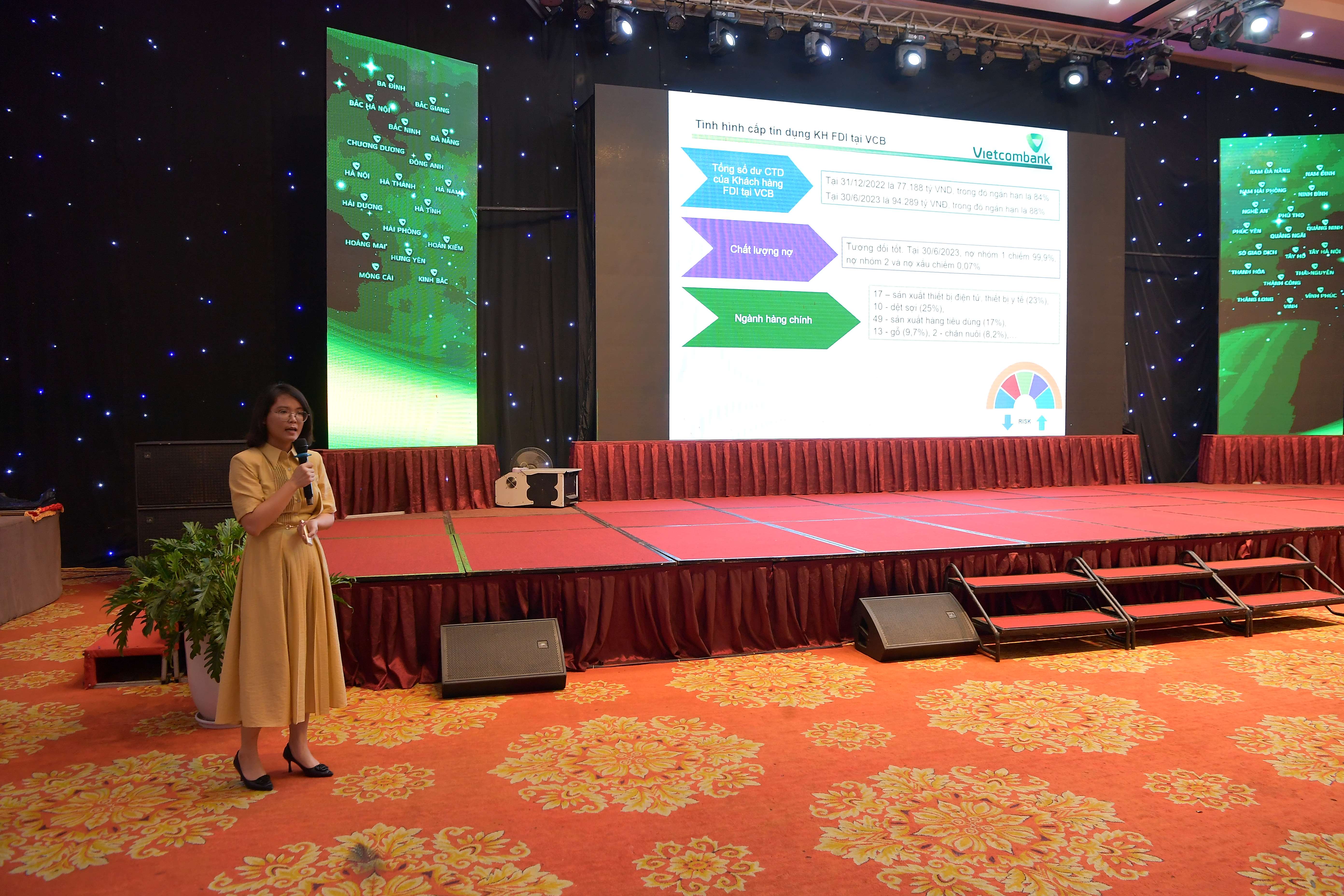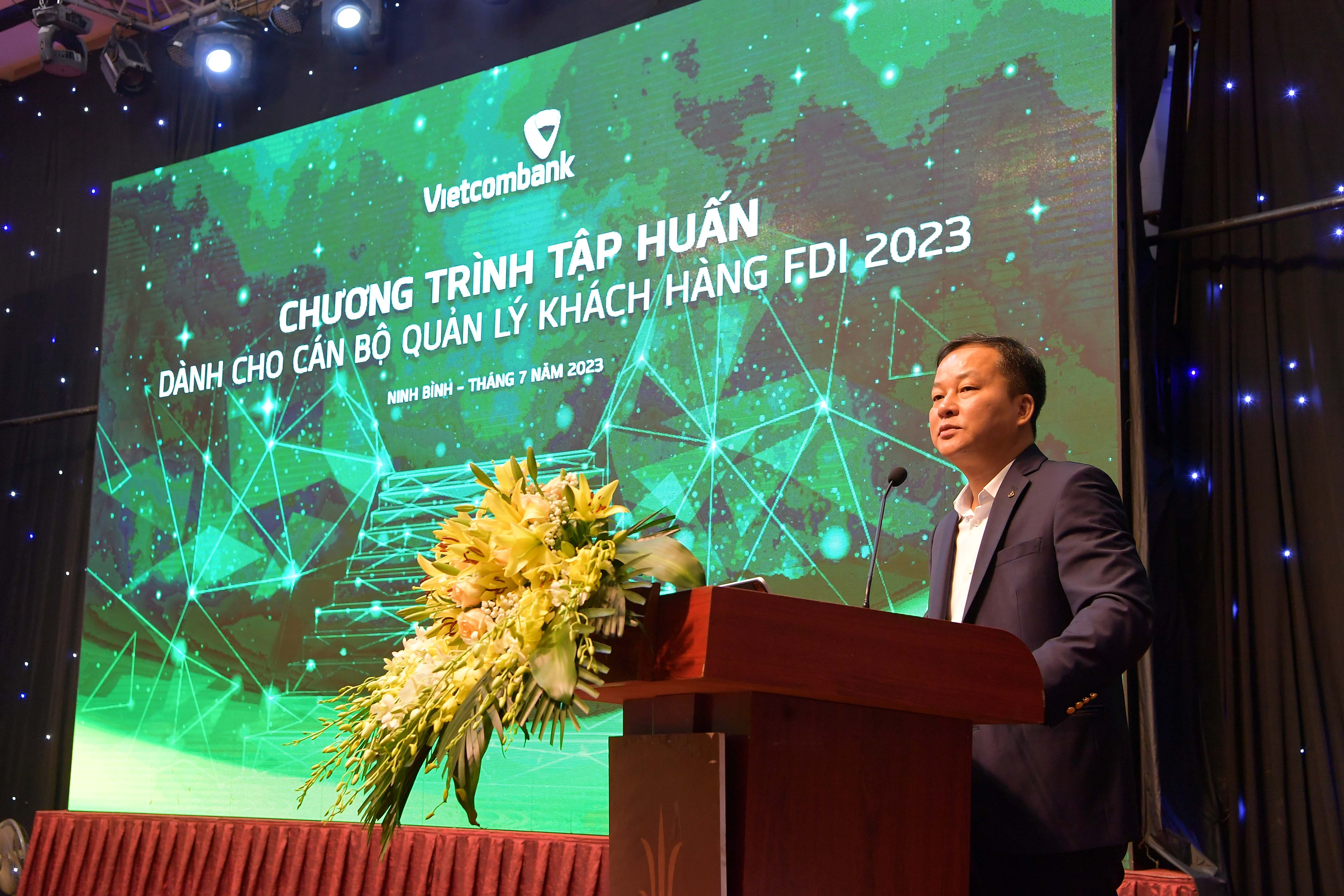 Phát biểu khai mạc và chỉ đạo tại Chương trình tập huấn, Phó Tổng giám đốc Nguyễn Việt Cường cho biết: Trong những năm gần đây, Ban lãnh đạo Vietcombank đánh giá cao vai trò và sự đóng góp của phân khúc khách hàng FDI vào kết quả kinh doanh của Vietcombank nói chung và của Khối Bán buôn nói riêng. Xét rộng ra toàn thị trường, tính đến thời điểm hiện tại, Vietcombank vẫn đang chiếm giữ thị phần số 1 so với các TCTD trong nước về Tín dụng và Huy động vốn đối với các khách hàng FDI.