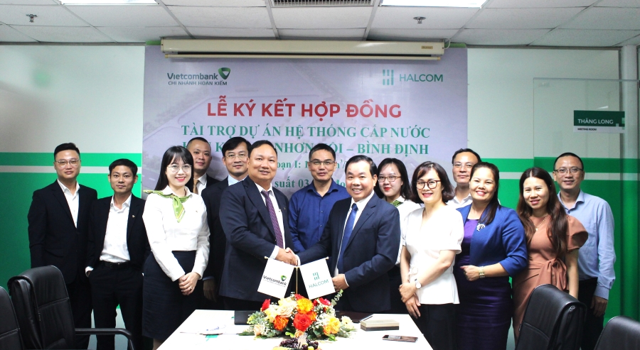 Công ty CP Halcom Việt Nam là doanh nghiệp có hơn 22 năm kinh nghiệm trong lĩnh vực đầu tư và tư vấn cho các dự án phát triển hạ tầng đô thị, cấp thoát nước, vệ sinh môi trường và năng lượng sạch. Công ty đã đưa vào vận hành thương mại nhà máy Phong Điện Phương Mai 3 với công suất 21MW và nhà máy điện mặt trời Hậu Giang 35MWp. Dự án hệ thống cấp nước Khu kinh tế Nhơn Hội được khởi công xây dựng từ tháng 3/2022 là dự án thứ hai trên địa bàn tỉnh Bình Định do Công ty CP Halcom Việt Nam làm chủ đầu tư. Dự án có tổng công suất thiết kế 50.000 m3/ngày đêm, chia làm 3 giai đoạn với tổng mức đầu tư 1.140 tỷ đồng. Theo hợp đồng tín dụng ký kết, Vietcombank Hoàn Kiếm sẽ tài trợ cho Công ty CP Halcom Việt Nam trong quá trình thực hiện dự án giai đoạn 1 với tổng hạn mức cấp tín dụng là 120 tỷ đồng. Dự án hướng đến mục tiêu cung cấp nước phục vụ nhu cầu xây dựng, sản xuất công nghiệp và sinh hoạt của Khu kinh tế Nhơn Hội, đảm bảo hoạt động và phát triển của Khu kinh tế, tạo điều kiện thuận lợi cho sự phát triển kinh tế du lịch và dịch vụ tại địa phương.
