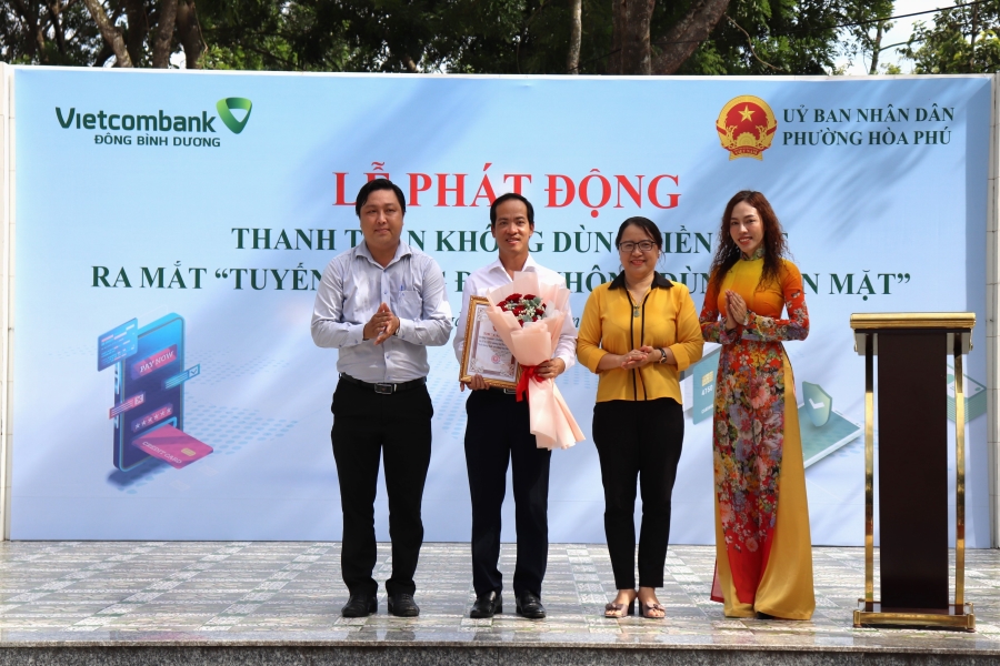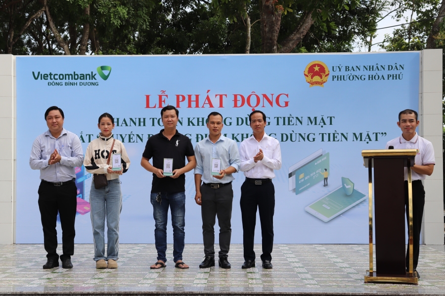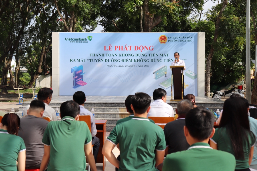 Cũng tại lễ phát động, ông Đỗ Thế Mãi - Phó giám đốc Vietcombank Đông Bình Dương đã thể hiện cam kết của ngân hàng đồng hành với sự phát triển của khu vực: “Chúng tôi cam kết hỗ trợ tối đa cho các doanh nghiệp, cửa hàng và cư dân trên địa bàn phường Hòa Phú trong việc chuyển đổi sang các phương thức thanh toán không dùng tiền mặt, sẵn sàng cung cấp các dịch vụ và giải pháp tiên tiến để đảm bảo mọi giao dịch diễn ra an toàn, nhanh chóng và hiệu quả”.