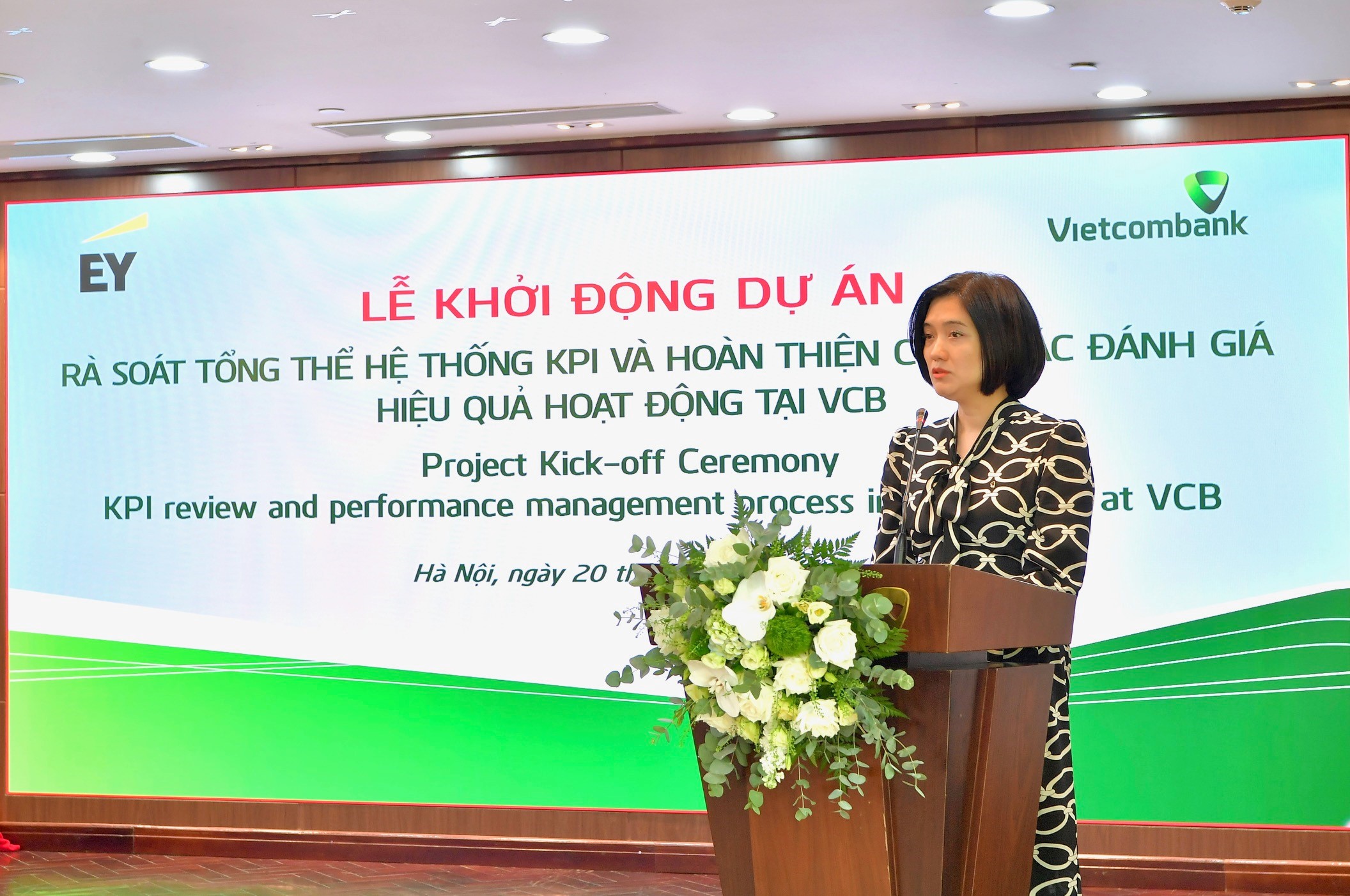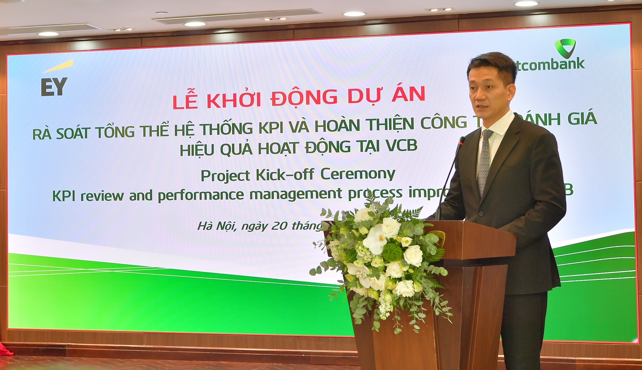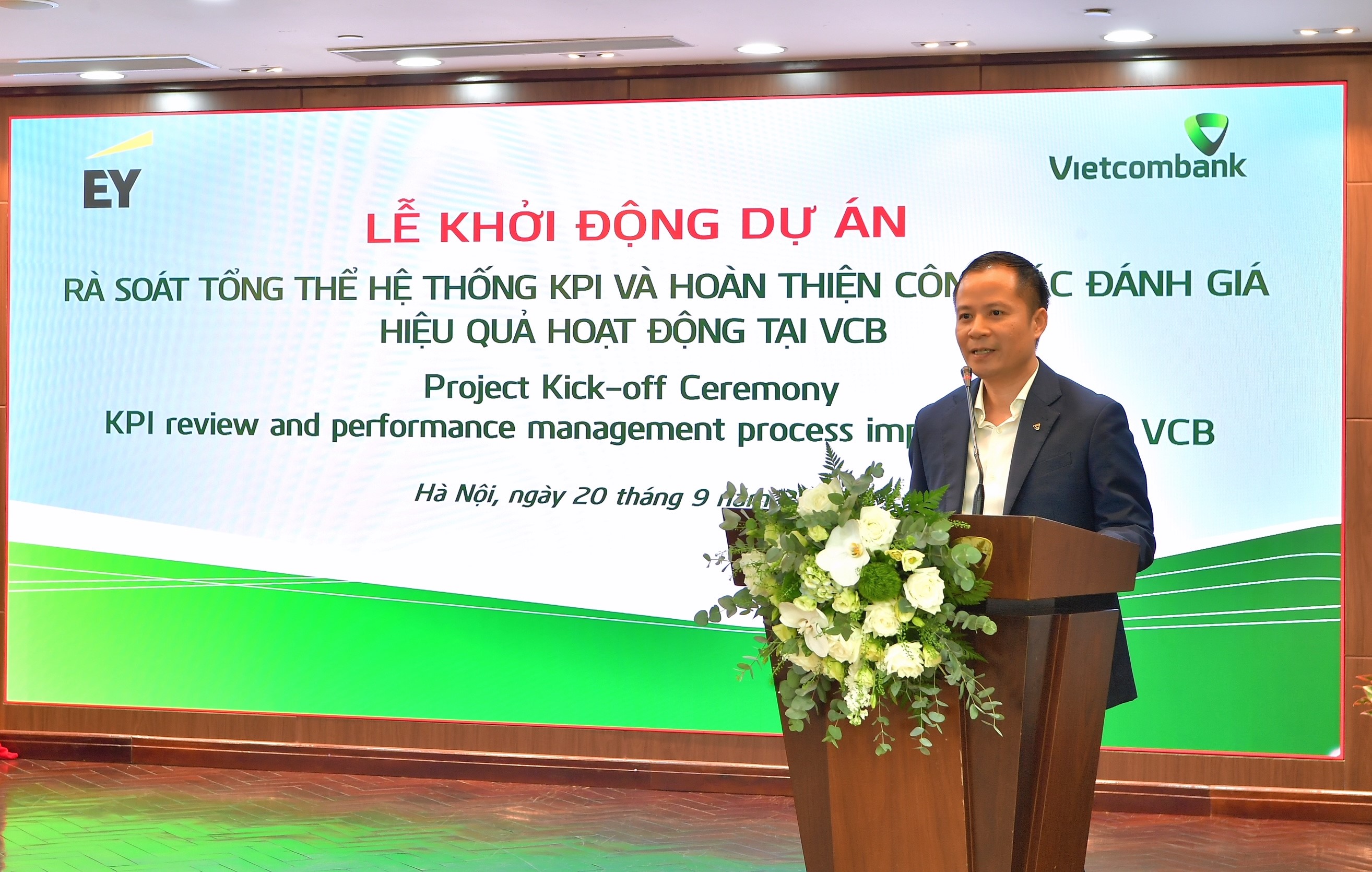 Khai mạc buổi lễ, ông Lê Hoàng Tùng – Phó Tổng Giám đốc Vietcombank đã chúc mừng Liên danh Công ty EY Việt Nam đã vượt qua quá trình lựa chọn nhà thầu để trở thành đơn vị tư vấn cho Vietcombank triển khai dự án. Với vị thế là ngân hàng tiên phong tại Việt Nam, Vietcombank đã triển khai dự án xây dựng hệ thống KPI và nguyên tắc đánh giá hiệu quả hoạt động từ năm 2013, kết quả dự án đã được chính thức áp dụng từ năm 2016. Việc triển khai áp dụng hệ thống KPI là một trong những bước chuyển quan trọng trong quản trị điều hành tại Vietcombank, có đóng góp không nhỏ vào sự phát triển bứt phá của Vietcombank trong những năm gần đây. Kể từ năm 2016 đến nay, quy mô tổng tài sản của Vietcombank đã tăng hơn 2 lần, lợi nhuận trước thuế tăng hơn 4,5 lần, năng suất lao động tăng hơn 3 lần . Vietcombank đã vươn lên đứng thứ 85 trong các ngân hàng niêm yết lớn nhất toàn cầu xét trên quy mô vốn hóa.