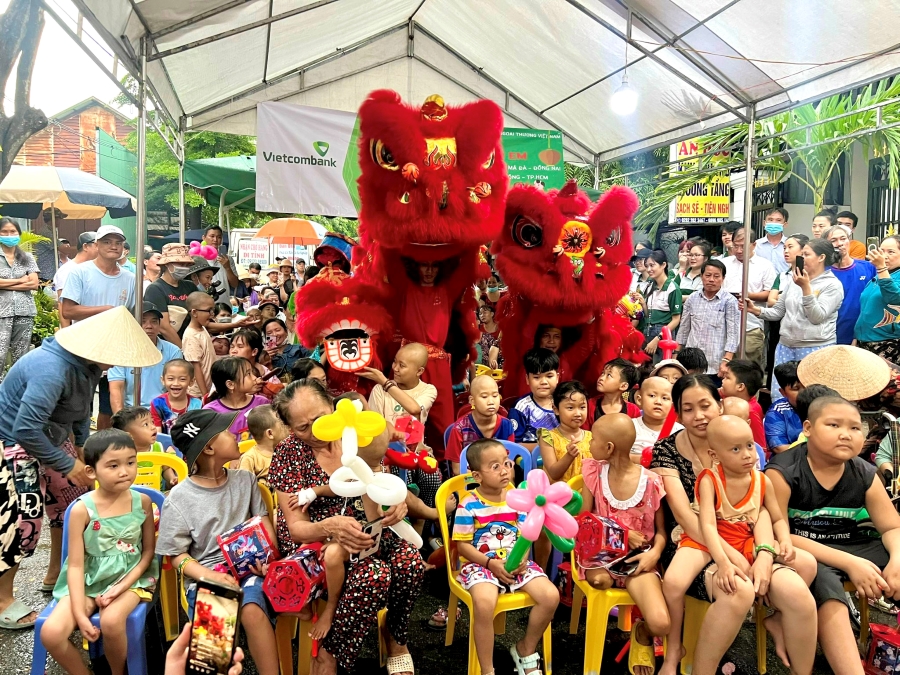 Tiết mục múa lân sư rồng đã mang đến tiếng cười cho các bệnh nhi ung thư