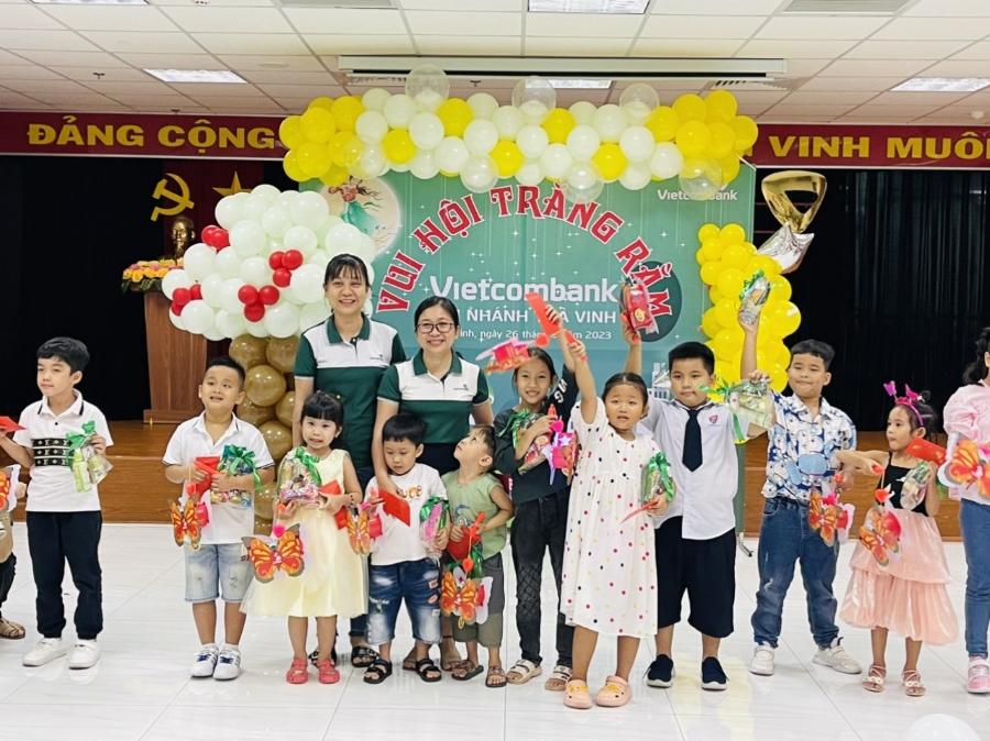 Chương trình được tổ chức với nhiều nội dung phong phú gồm các trò chơi dân gian vui nhộn, đố vui về Tết trung thu. Nhân dịp này, Công đoàn cơ sở Vietcombank Trà Vinh đã trao nhiều phần quà nhằm động viên các cháu đã cố gắng trong năm học vừa qua và tiếp tục cố gắng hơn nữa trong năm học mới.